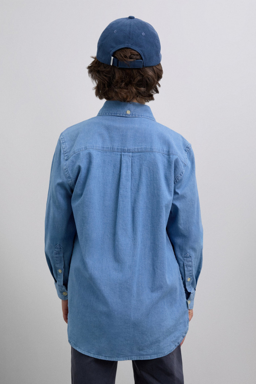 Oxford shirt made of BCI cotton. Denim. Regular Fit. Classic collar and button fastening. Long sleeves with buttoned cuffs. Embroidered contrast skull on the chest.