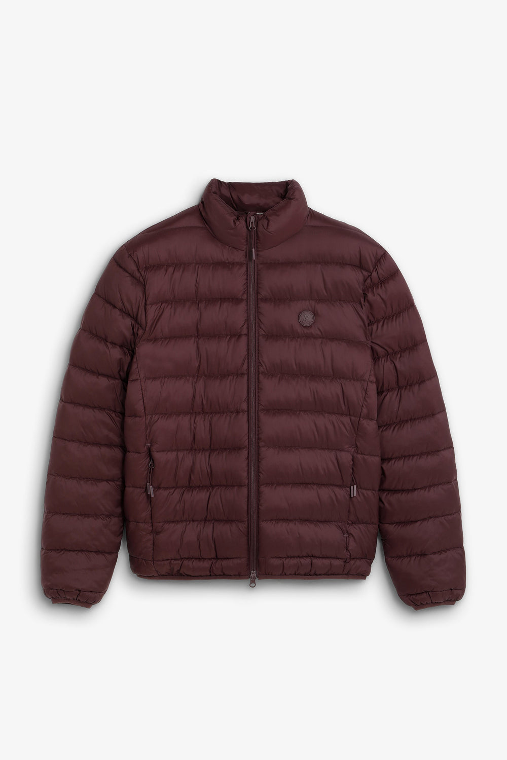 Quilted jacket with rubberised skull patch. Made of recycled nylon with recycled polyester filling. Regular fit. High collar. Zip fastening. Side pockets. Long sleeves with elastic cuffs.