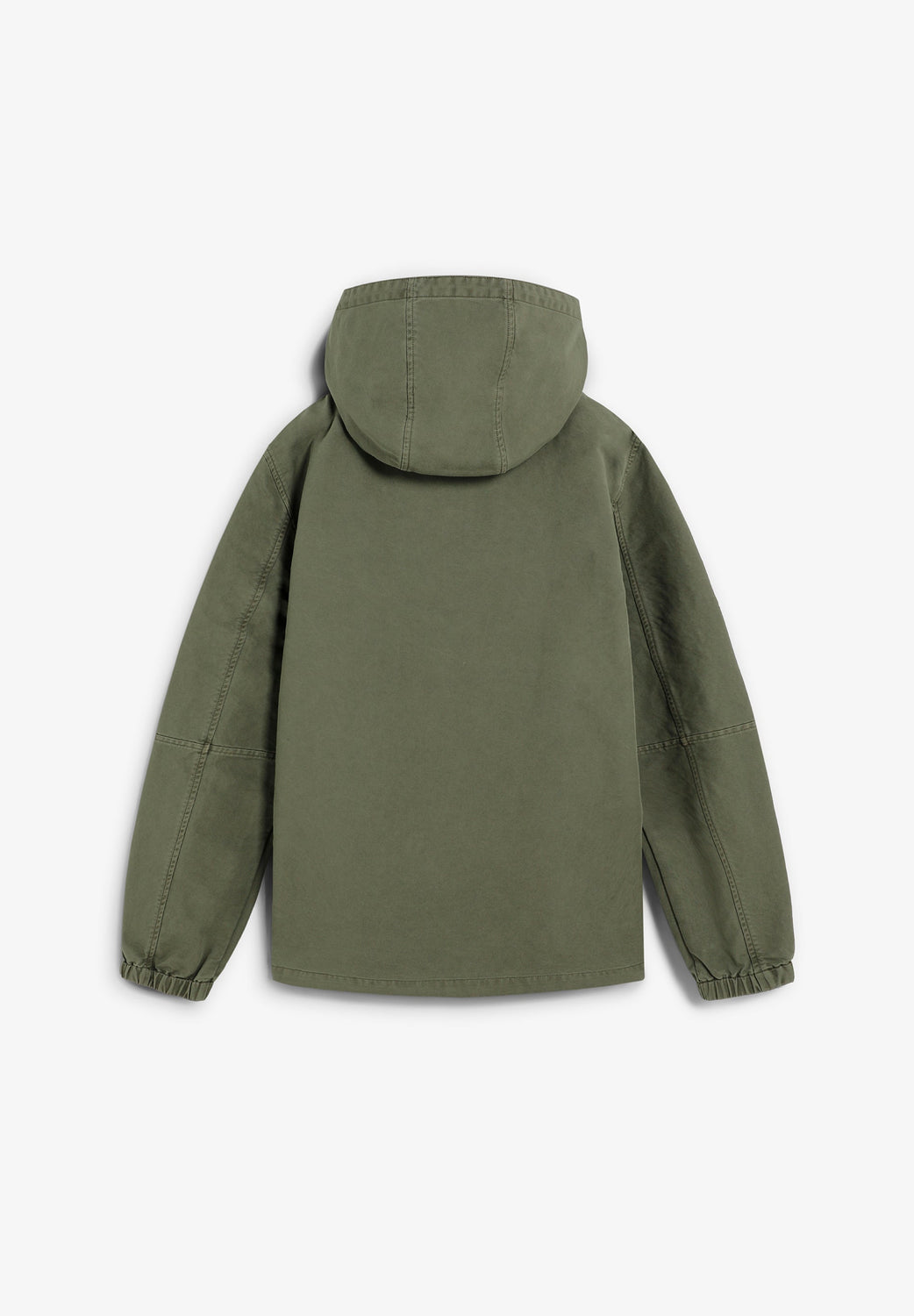 Jacket made of 100% BCI cotton. Side piped seam pockets. Hood with adjustable drawstring. Customised zip and drawstring stoppers with logo. High density printed logo detail. Sleeves with elasticated cuffs.