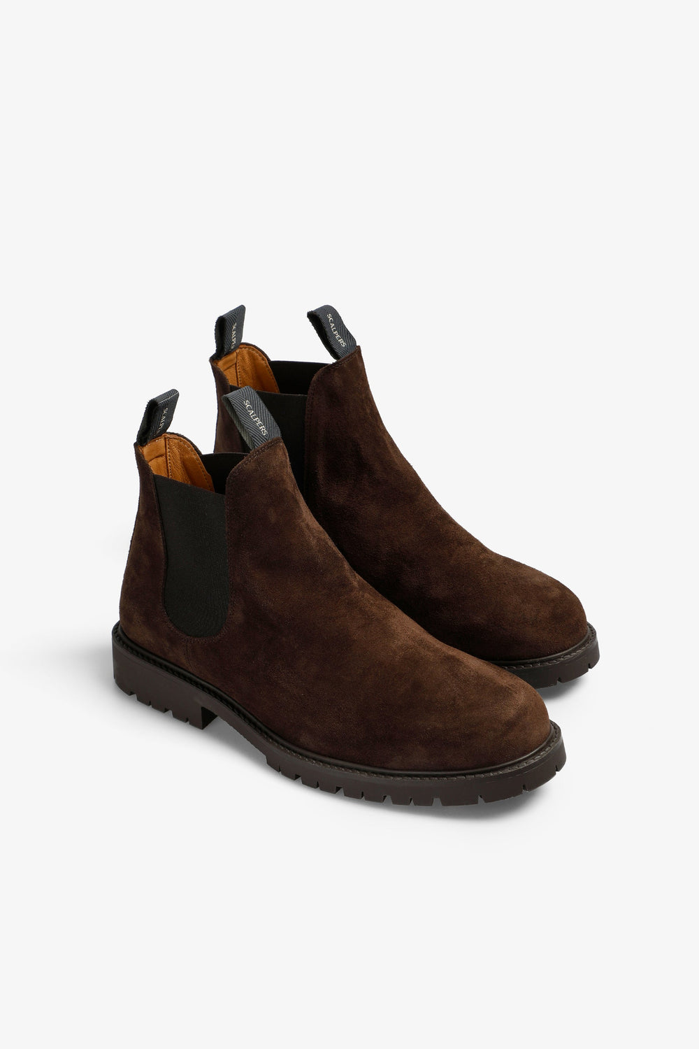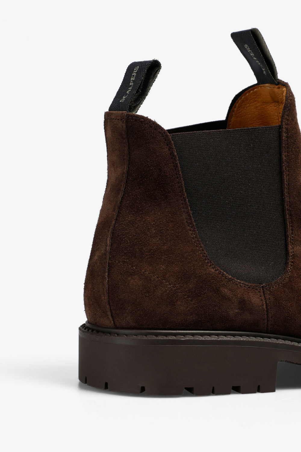 Chelsea boots made of 100% leather. Elasticated sides for a better fit. Rounded shape. Matching sole with slight heel. Logo label details.