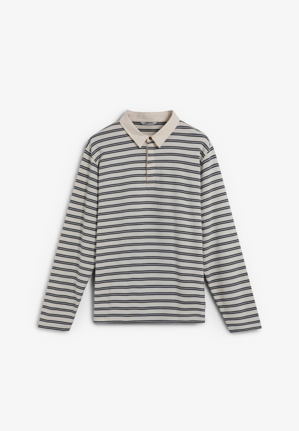 Polo shirt made of knitted 100% BCI cotton. Relaxed fit. Long sleeves. Contrast twill collar. Four-button fastening with concealed placket.