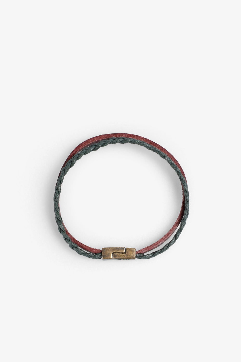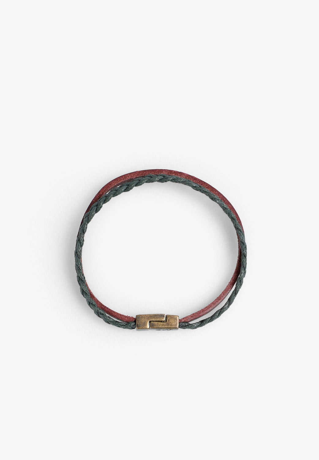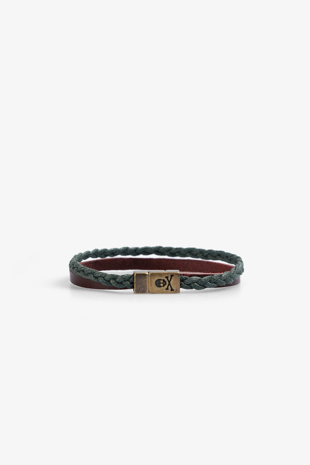 Leather bracelet made of 100% leather and cotton. Metal detail, engraved skull and snap closure.