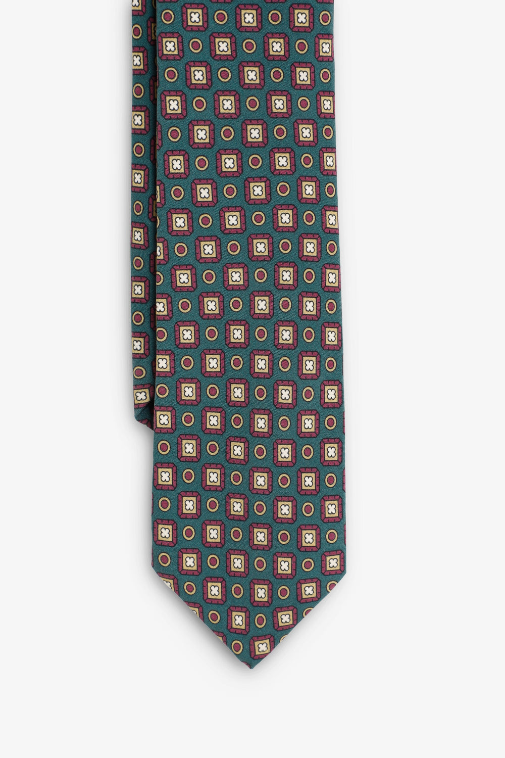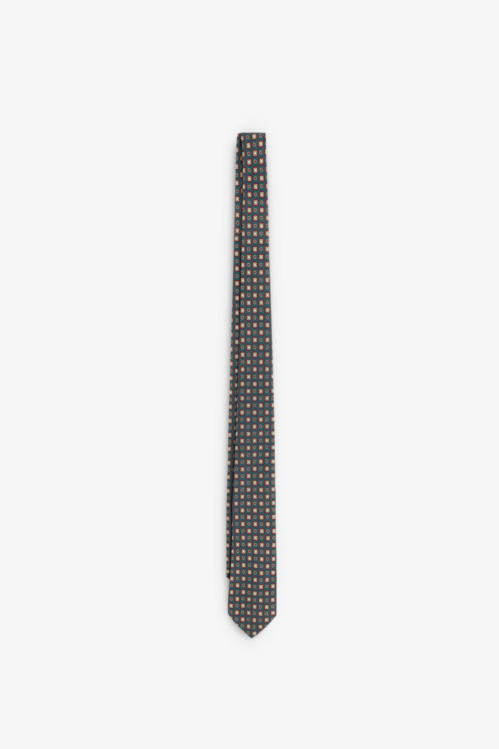 100% silk tie with geometric logo print and lined, 7.5 cm wide.