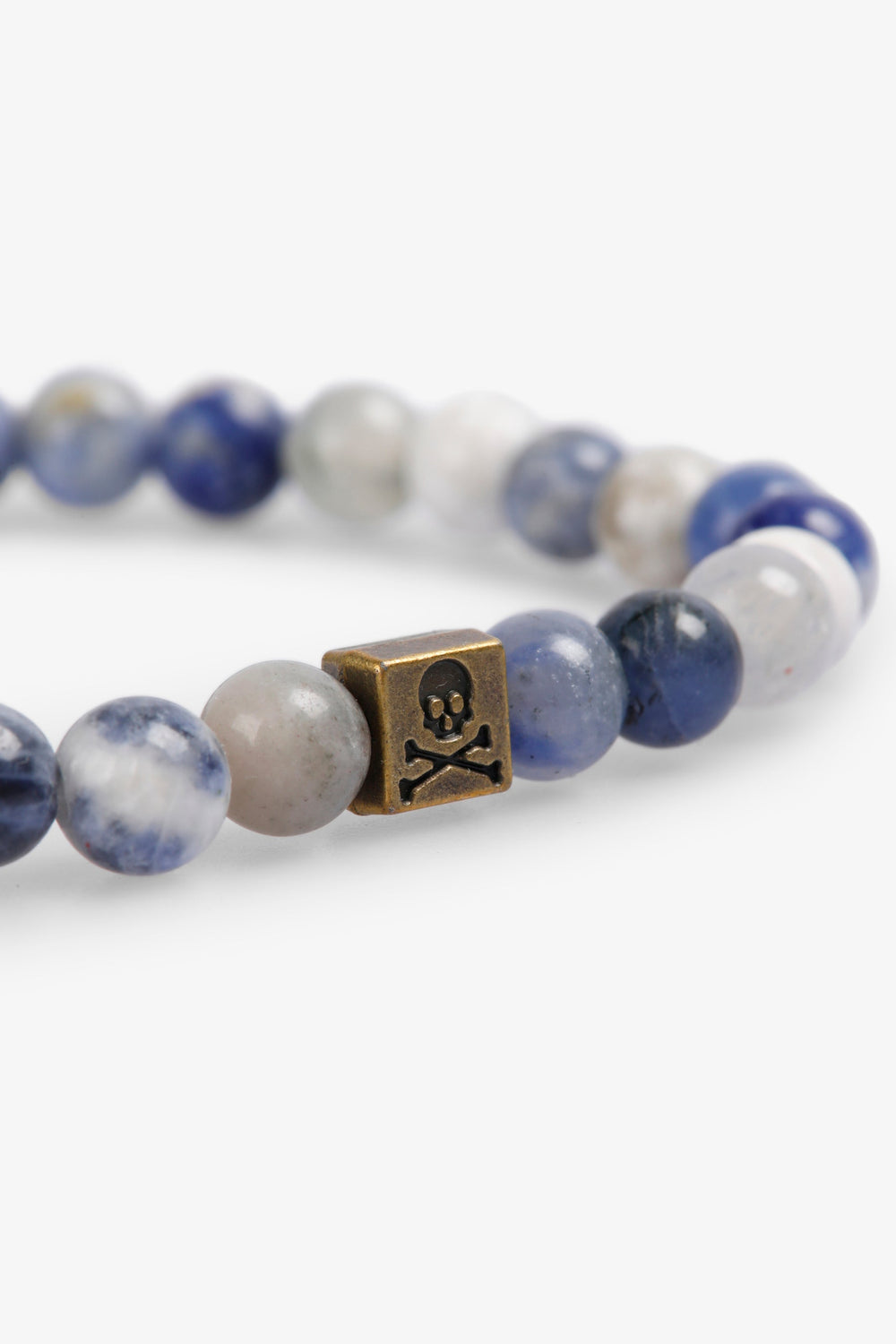 Bracelet made of round natural stone in different shades. Metal appliqués with logo.