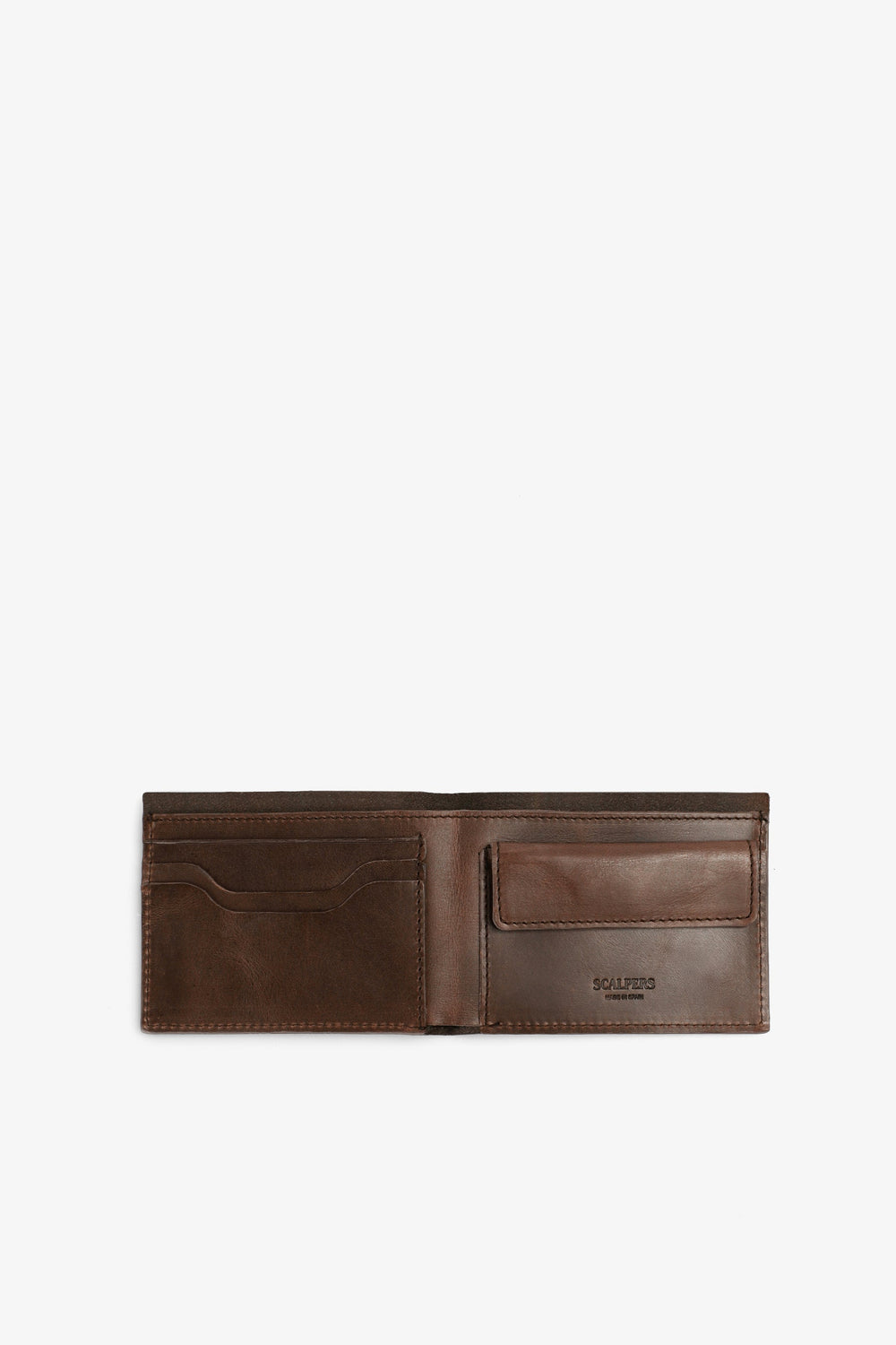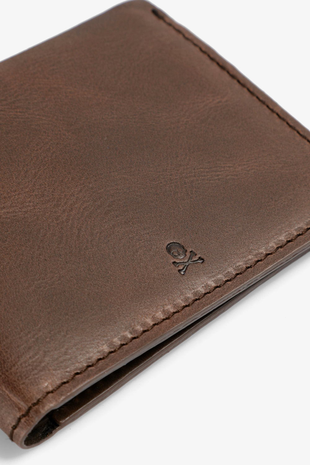 Wallet with engraved logo and skull. Made of 100% leather. Inner slots and compartments.