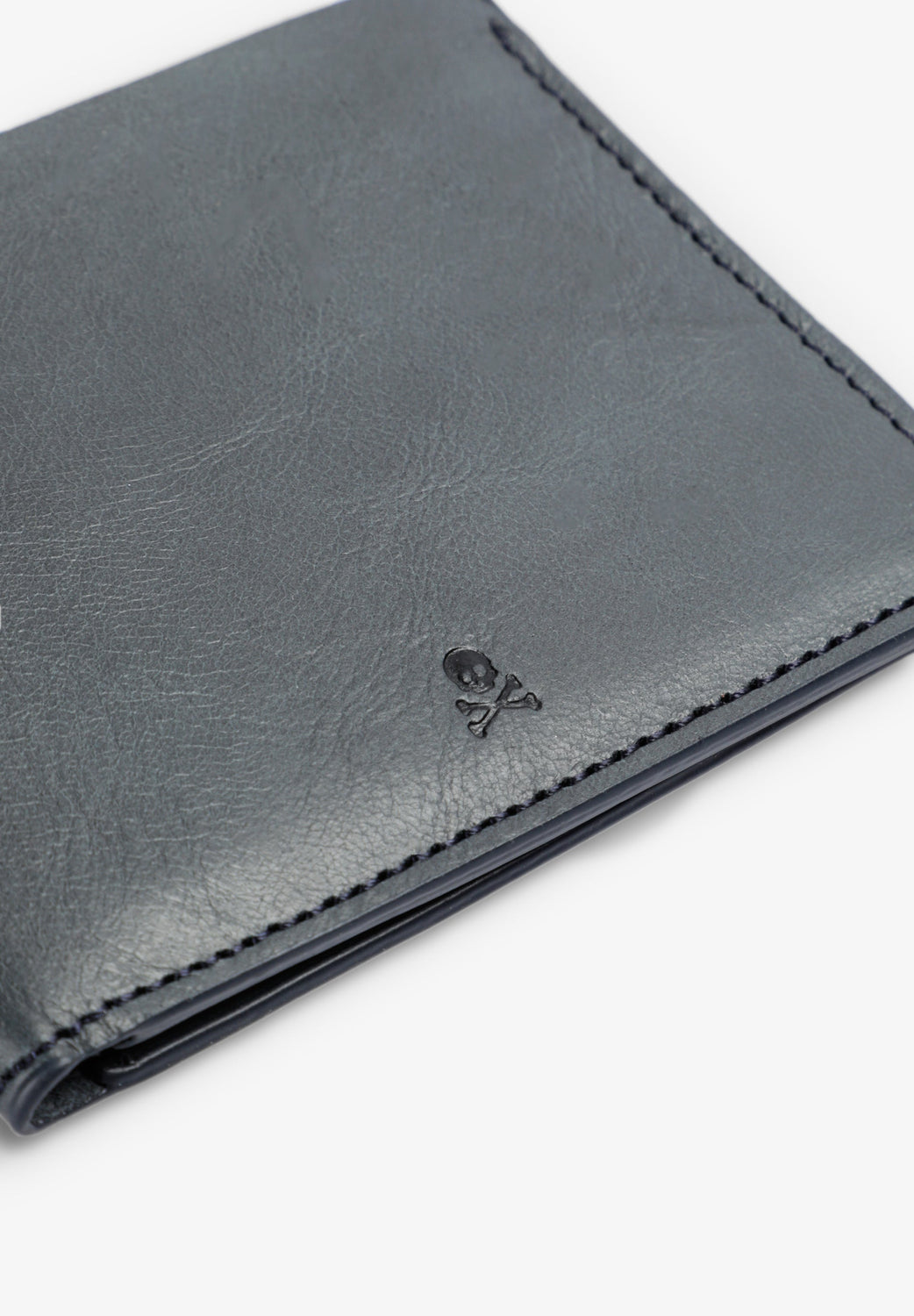 Wallet with engraved logo and skull. Made of 100% leather. Inner slots and compartments.
