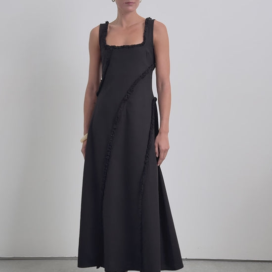 Midi dress made of 100% organic BCI cotton. Straps. Square-cut neckline. Topstitched fringe detail.