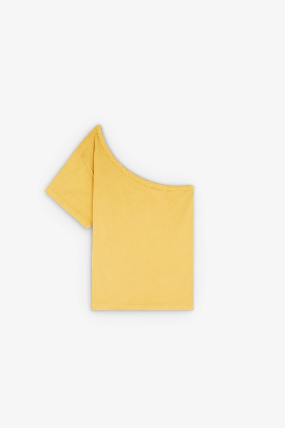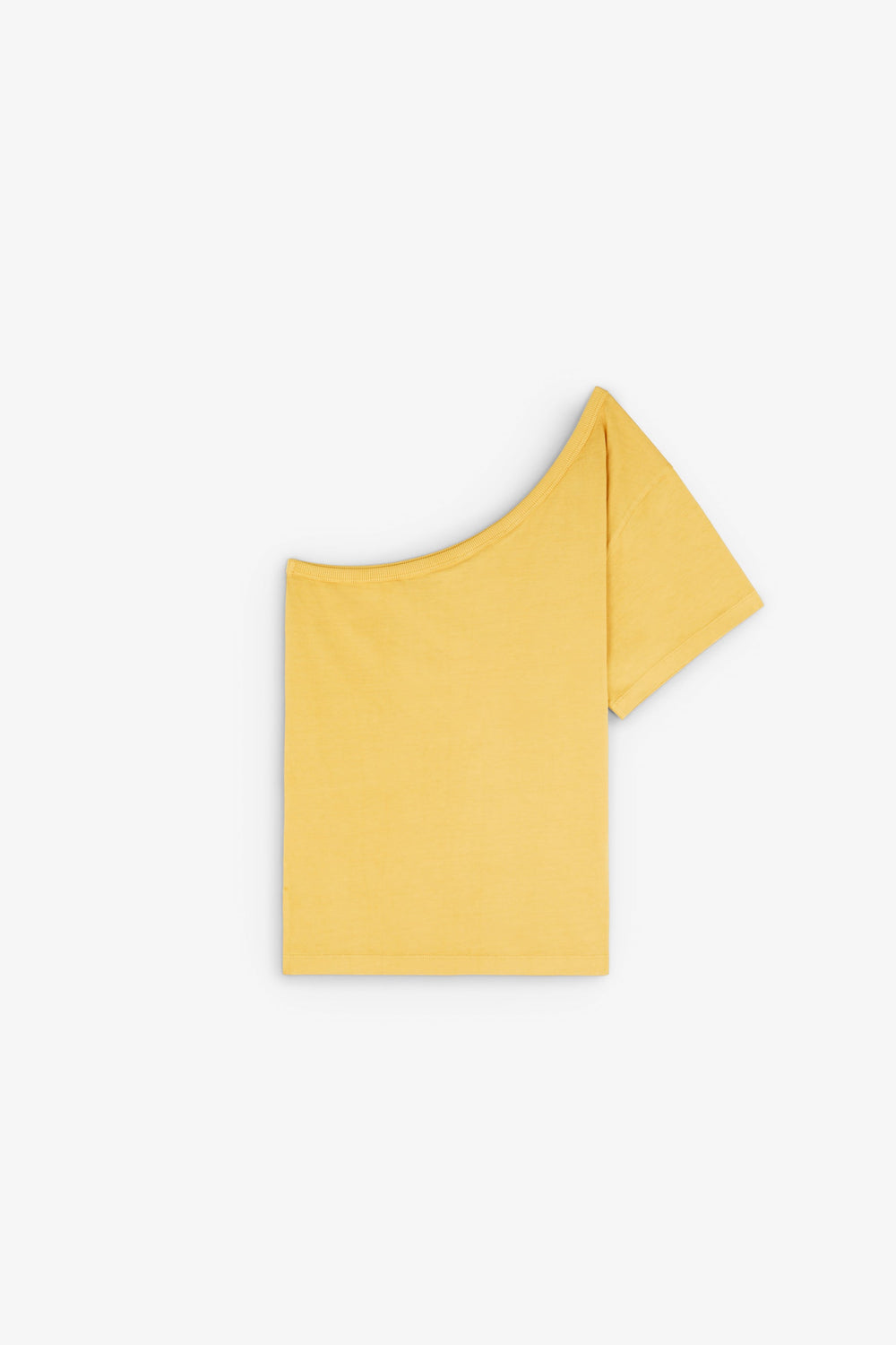 Top made of 100% BCI cotton. Asymmetric neckline and short sleeves.