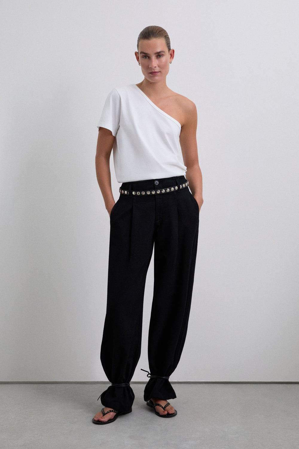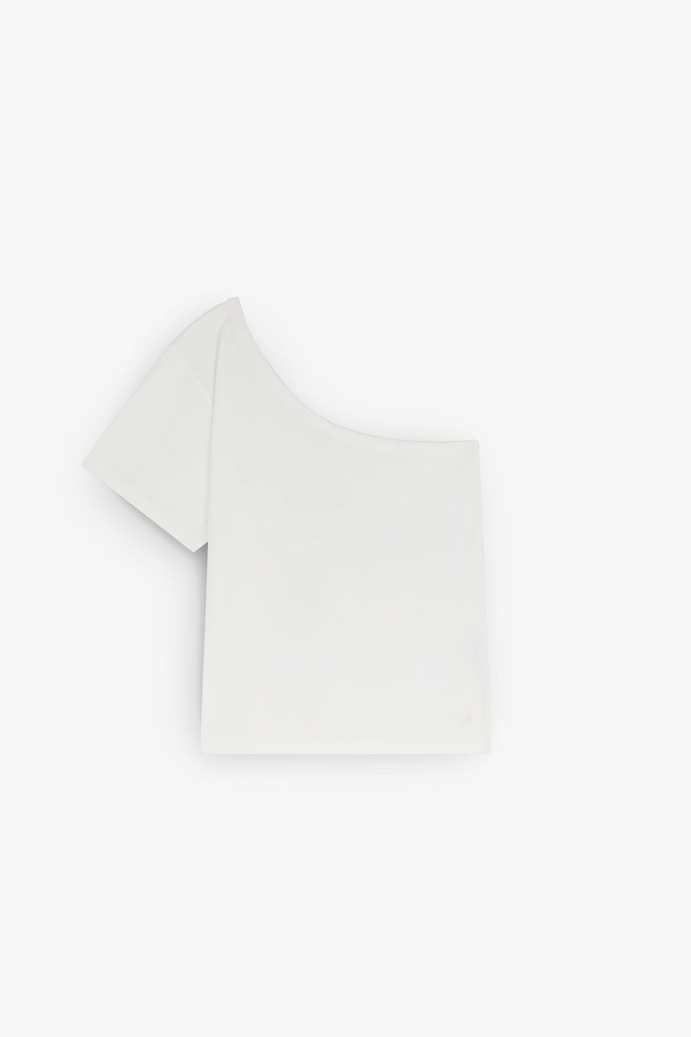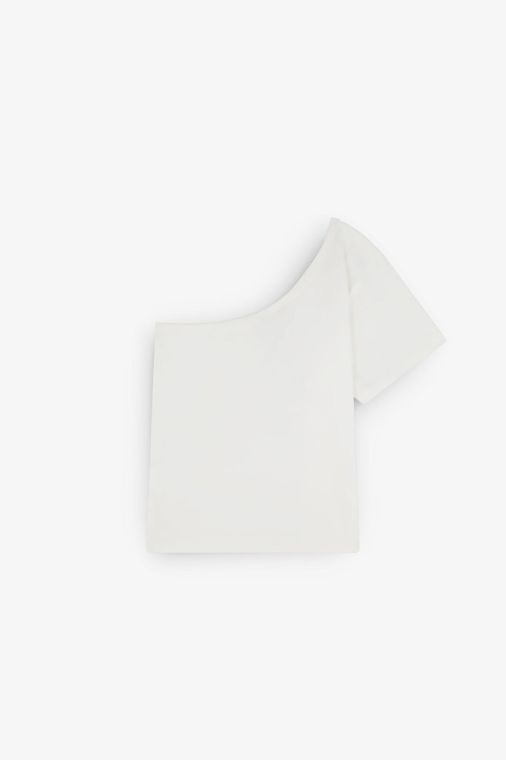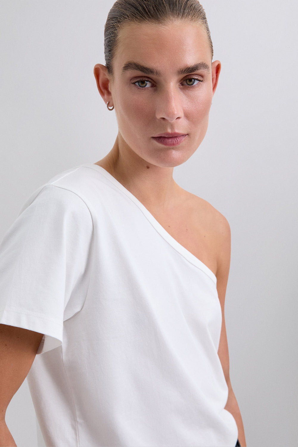 Top made of 100% BCI cotton. Asymmetric neckline and short sleeves.