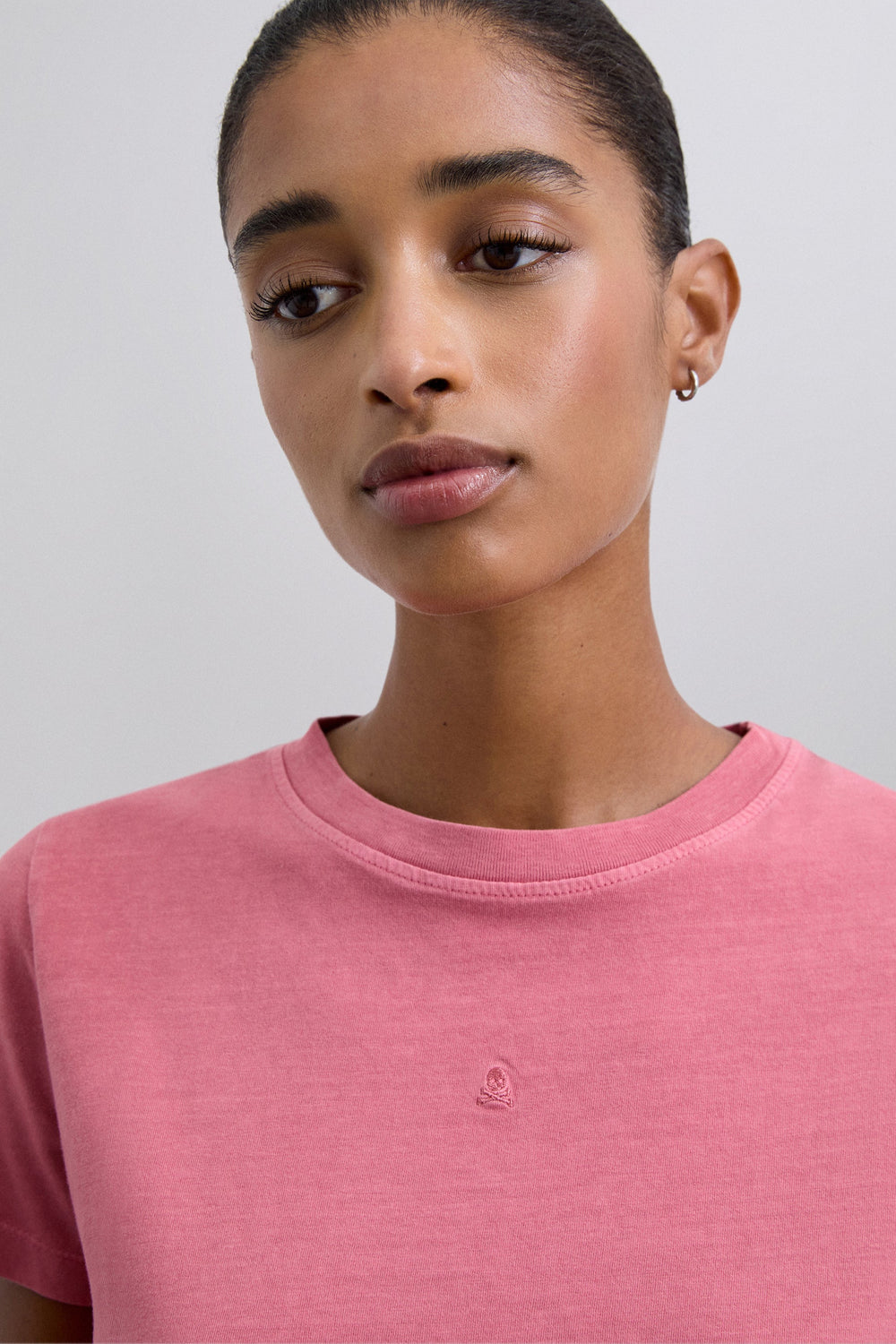 Basic T-shirt made of 100% organic cotton. Regular fit, round neck and short sleeves. Embroidered logo detail on the front.