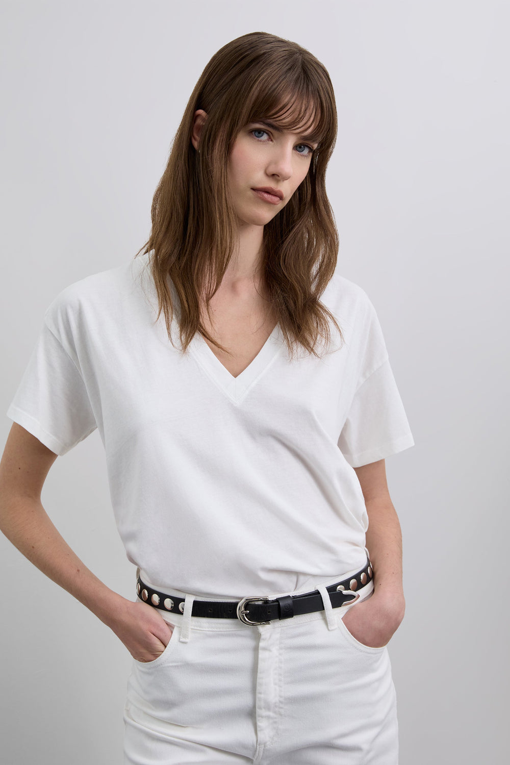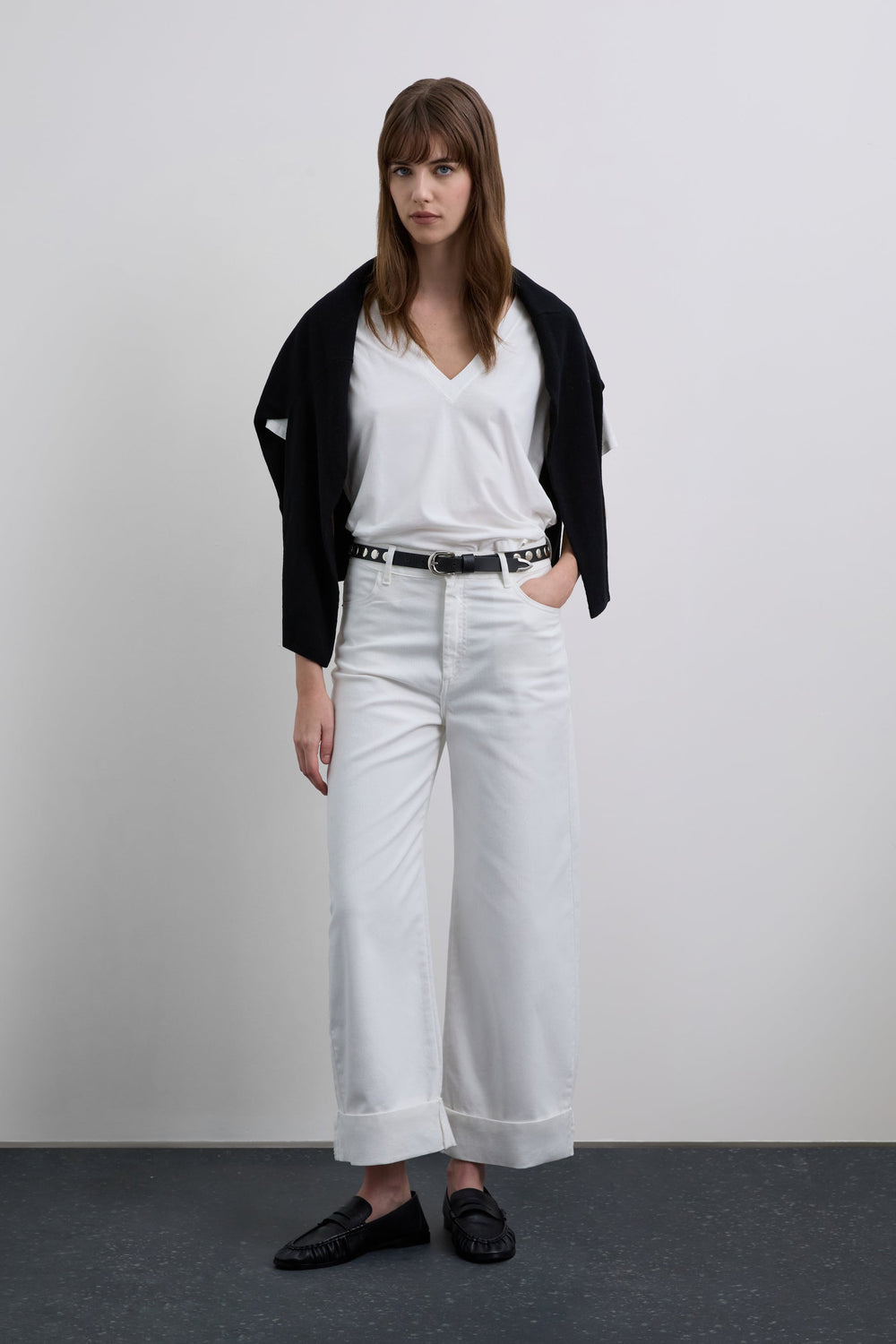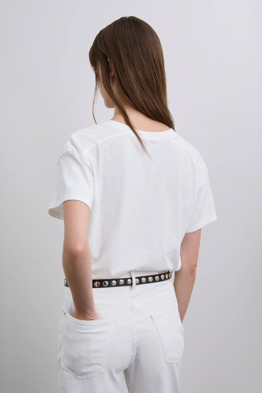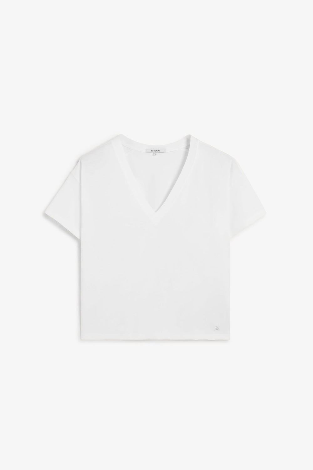 Basic T-shirt made of 100% organic cotton. Regular fit, V-neck and short sleeves. Embroidered logo detail at the lower front.