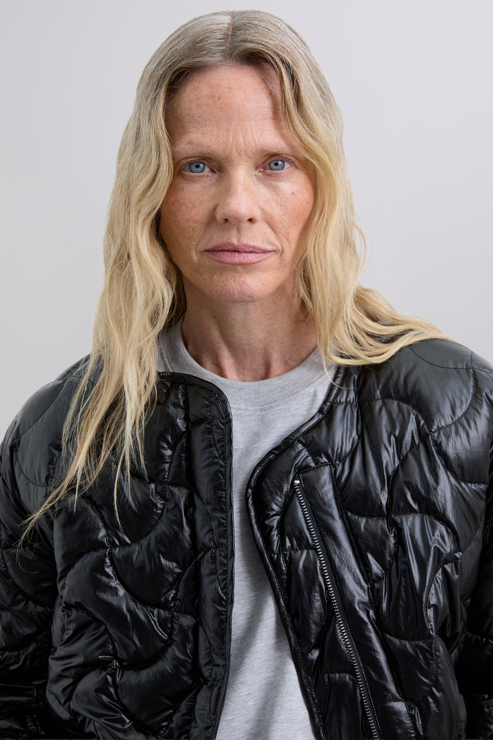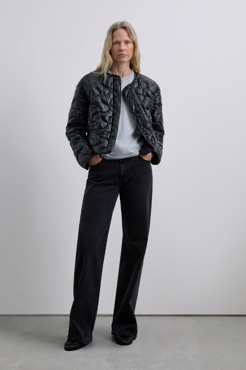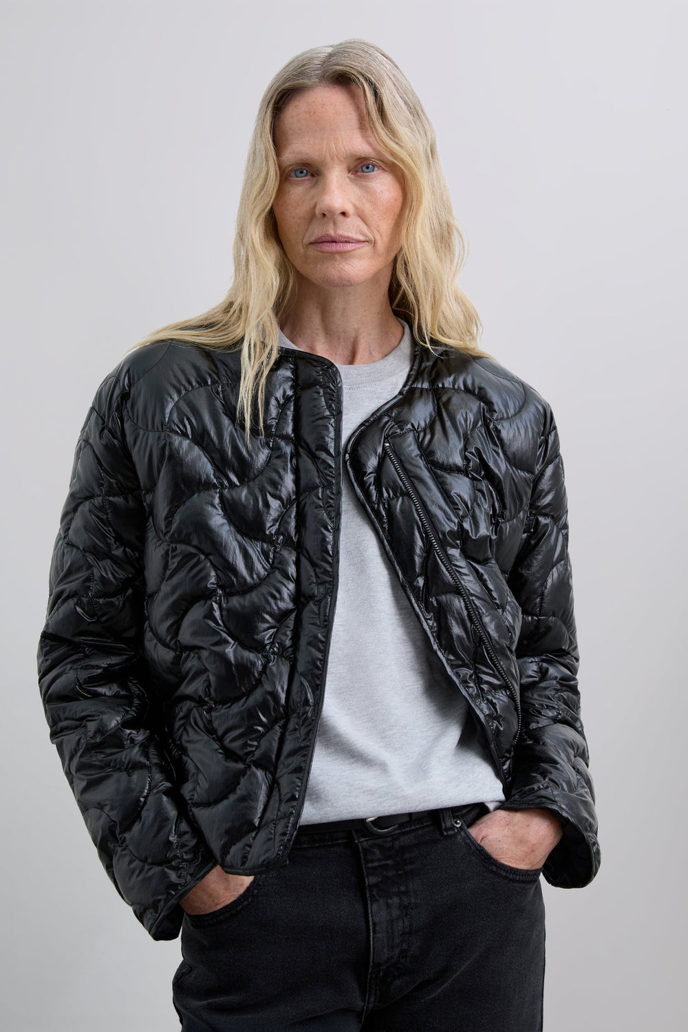 Regular fit puffer jacket. Round neck. Long sleeves. Snap-button fastening and zip at front. Rounded hem. Piped detailing around sleeves, pockets and hem.