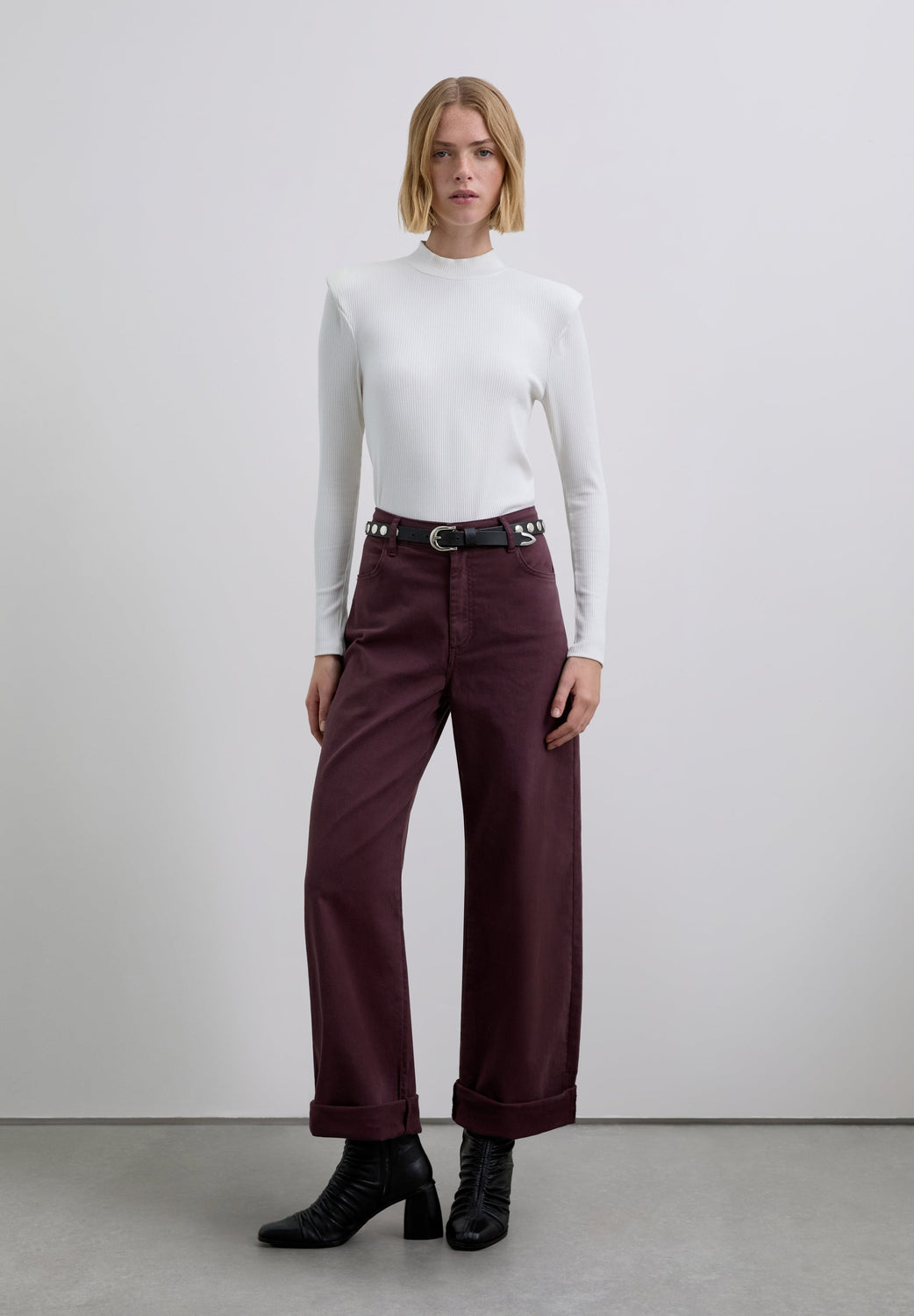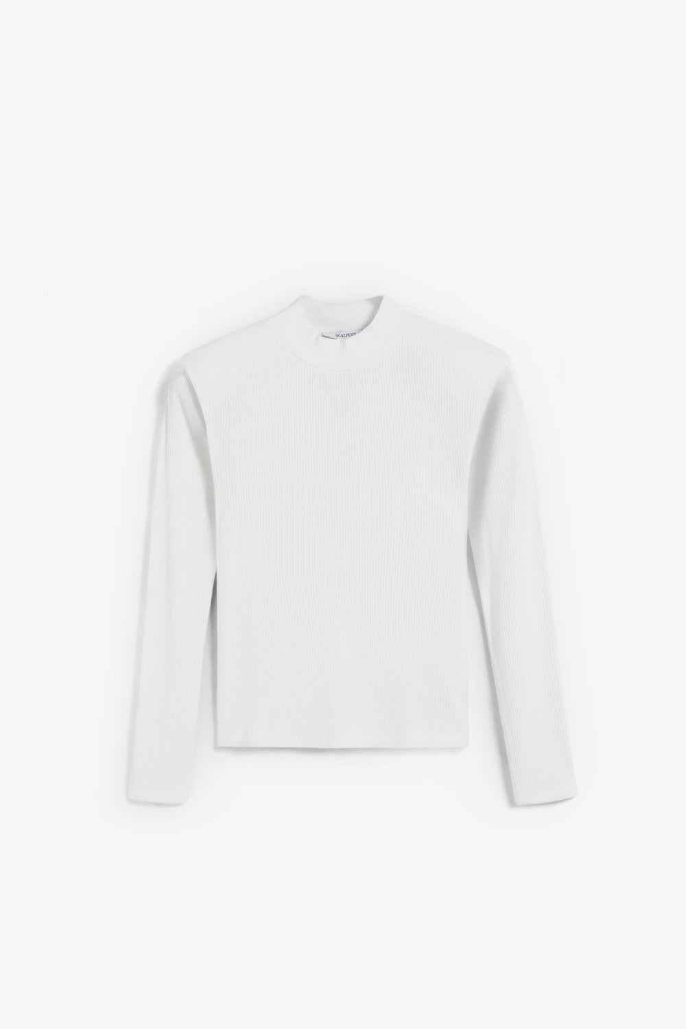 Long-sleeved top with raised collar and shoulder pads. Regular Fit. Stretch fabric. Textured fabric.