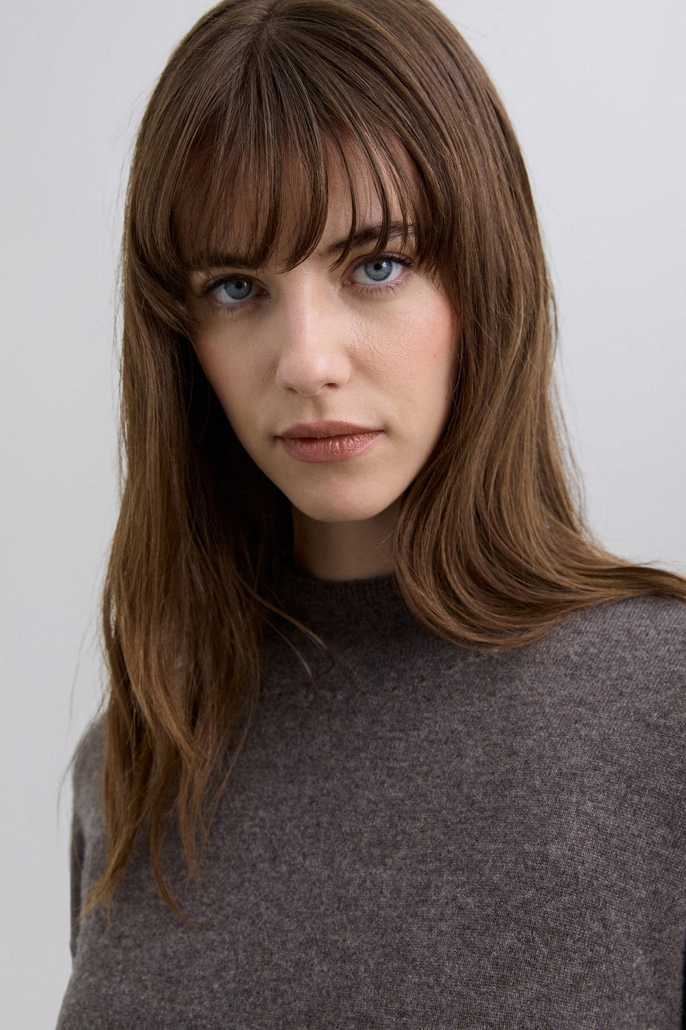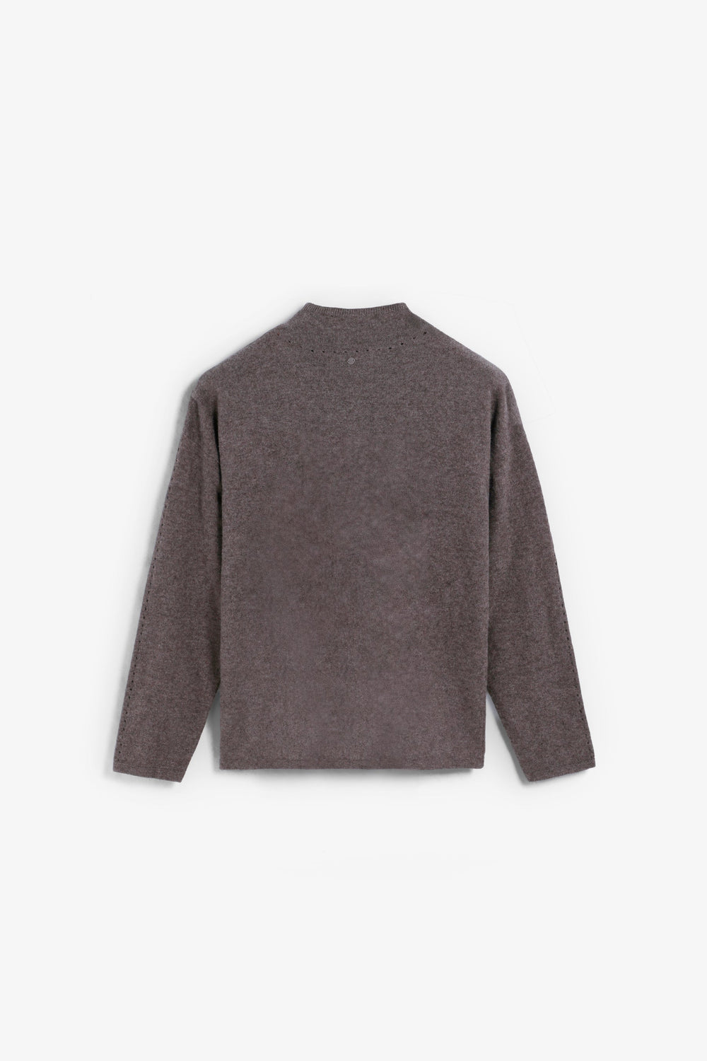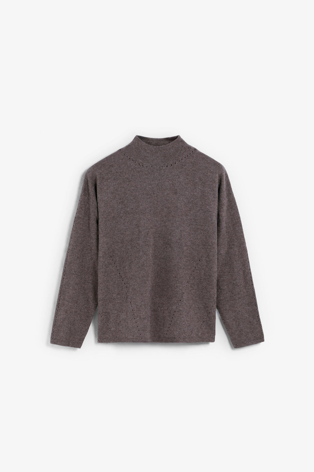 High neck sweater made of a wool blend. Regular fit. Long sleeves. Mini cutout detailing on the front, neck and sleeves.