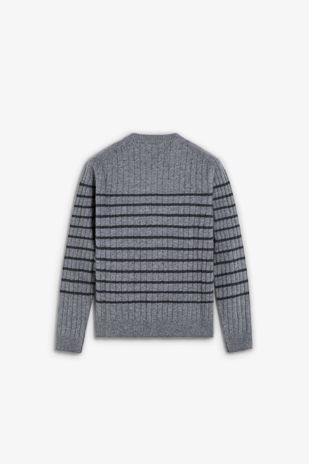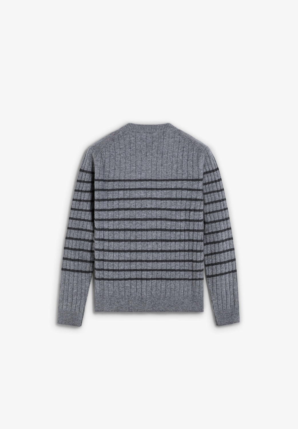 Sweater made of ribbed wool blend with striped print. Regular fit, slightly squared V-neck design. Long sleeves.