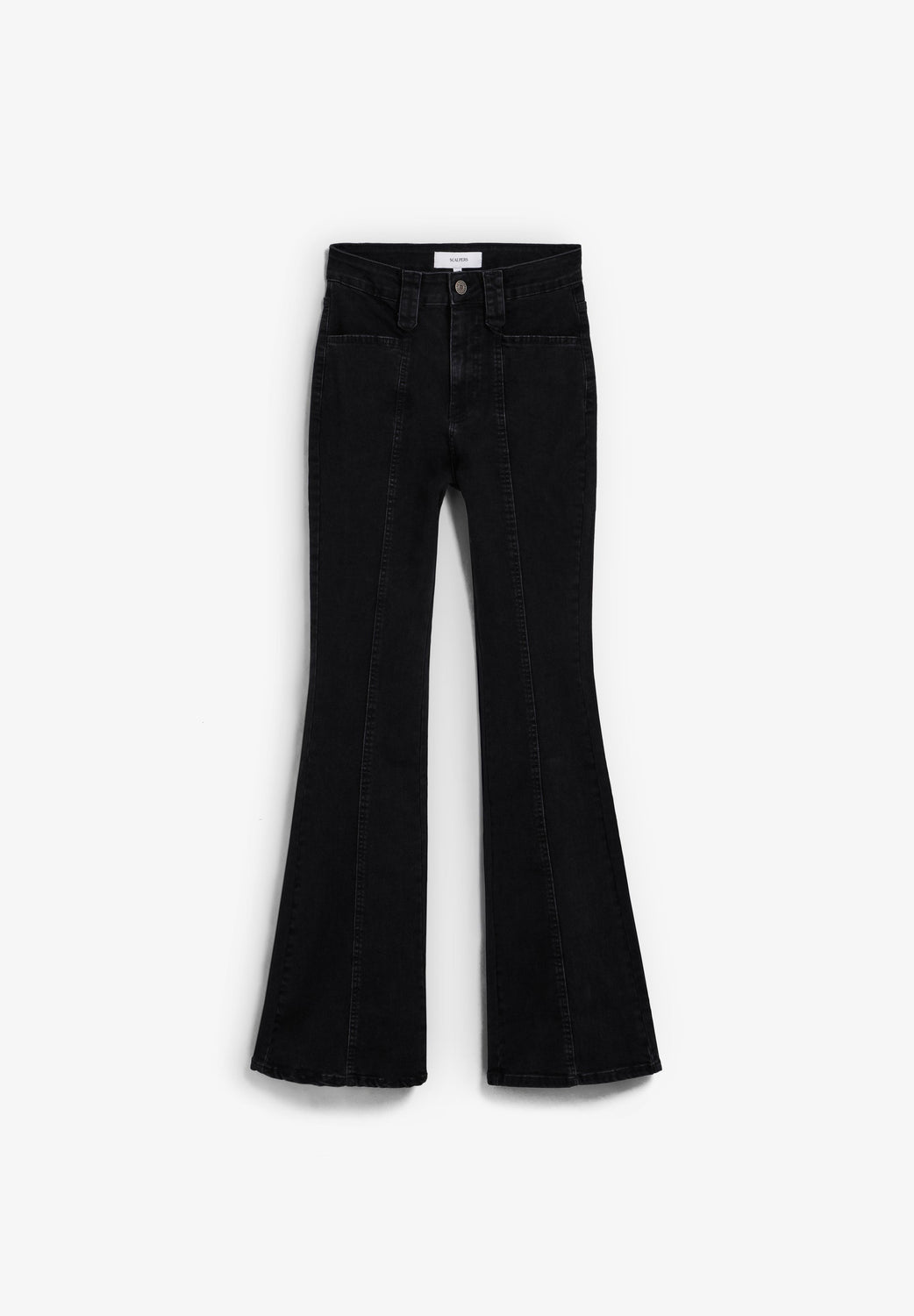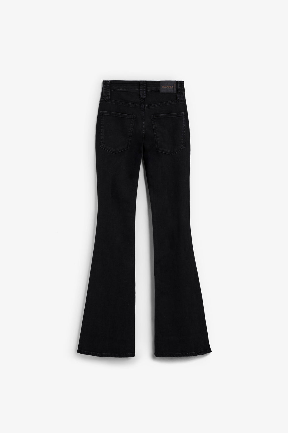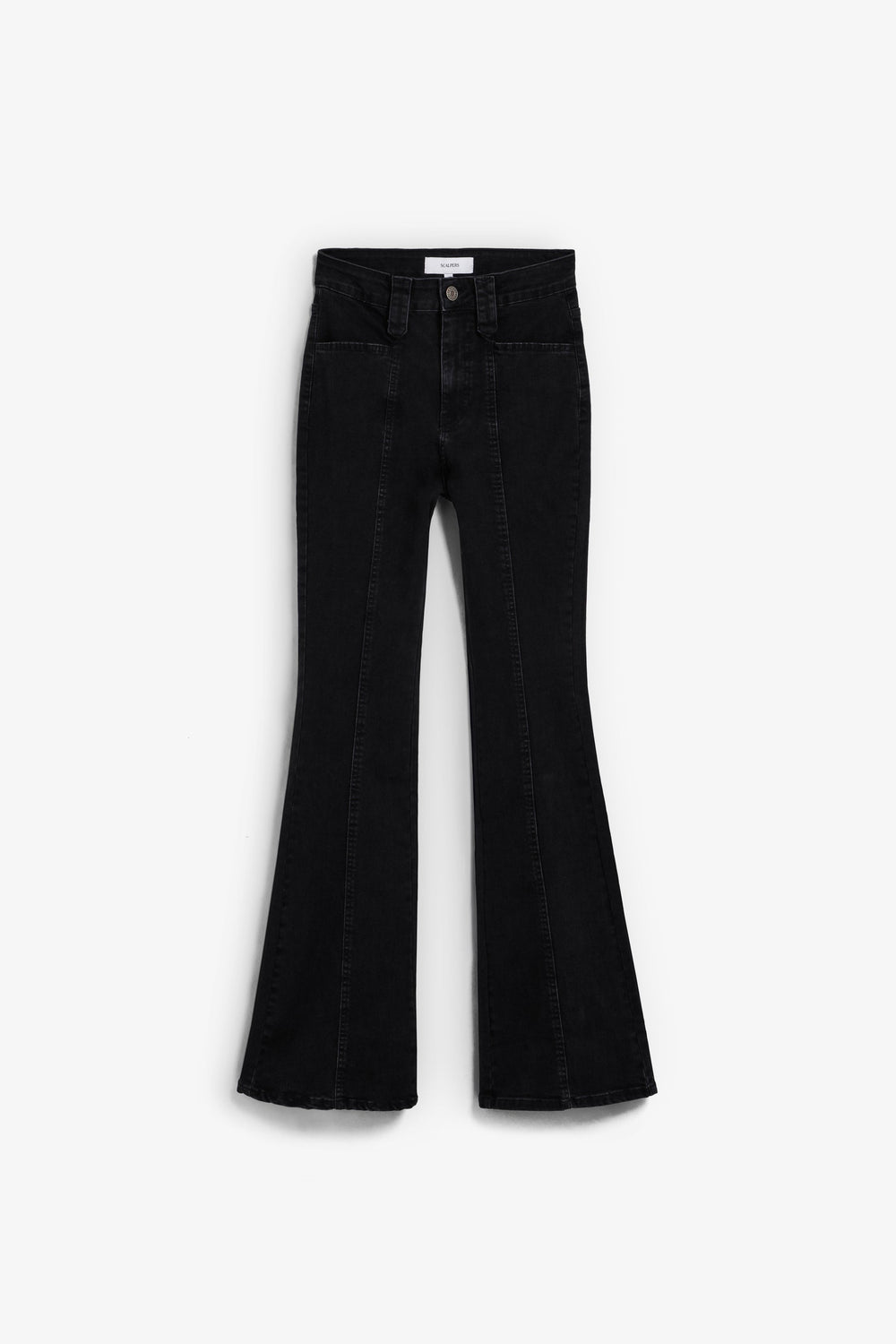 High-waisted bootcut jeans. Centre seam at the front. Front and back pockets. Button fastening and belt loops. Logo label detail at the back.