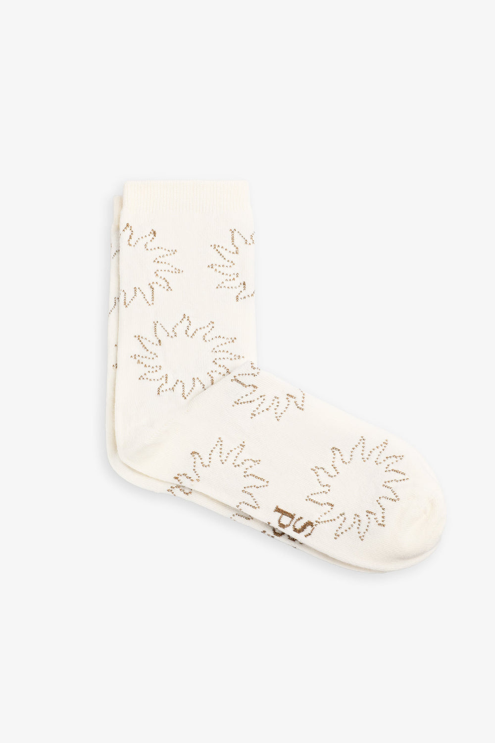 Cotton mid-calf socks made of a cotton blend. Contrasting sun motif embroidery. Logo detail on the sole. Ribbed trim.