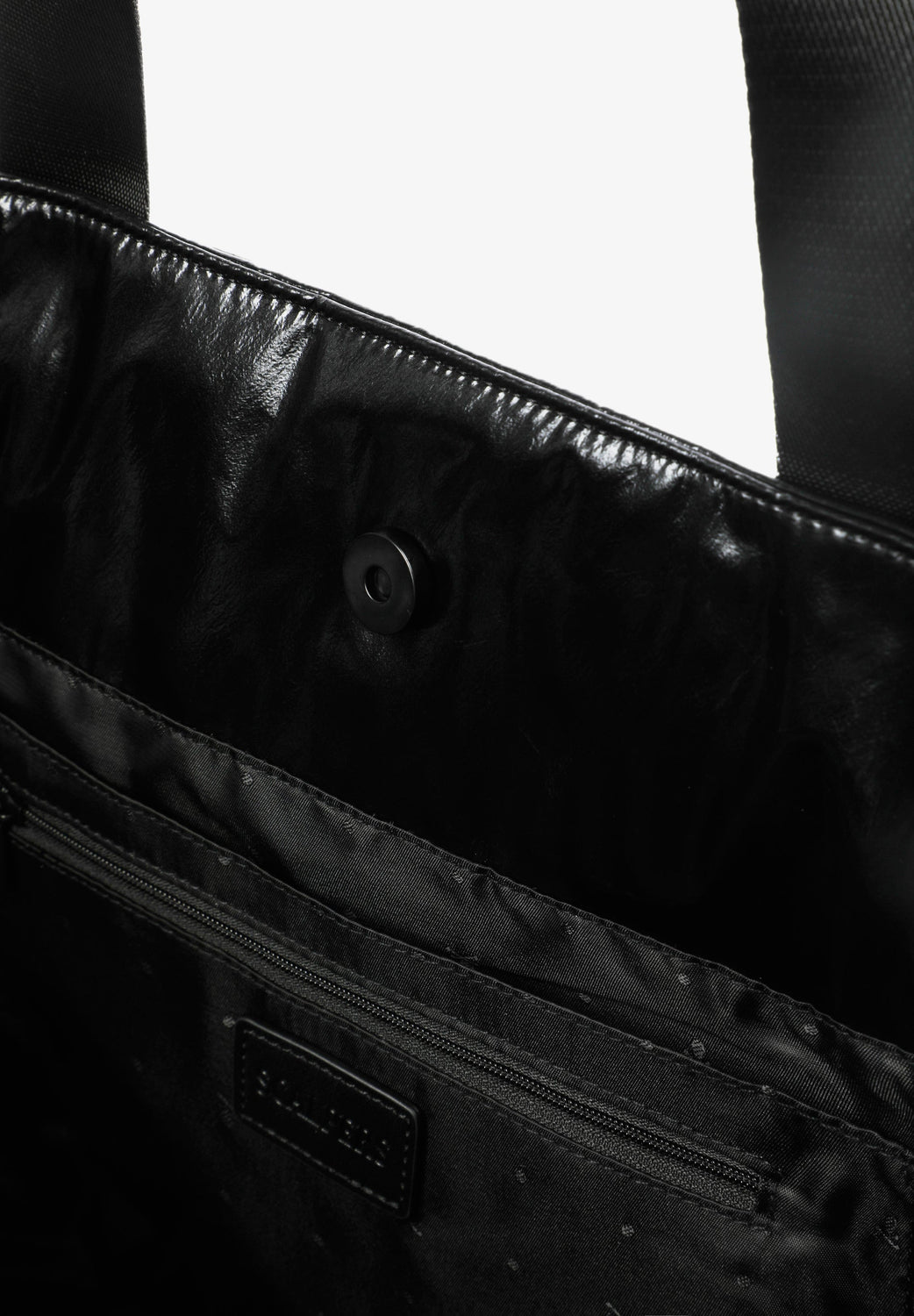 Sports bag made of PU. Water resistant. Long strap and short handle. Logo detail on handles and matching metallic skull on front. Magnetic button closure. Inner pocket with zip closure and matching embroidered logo patch detail.