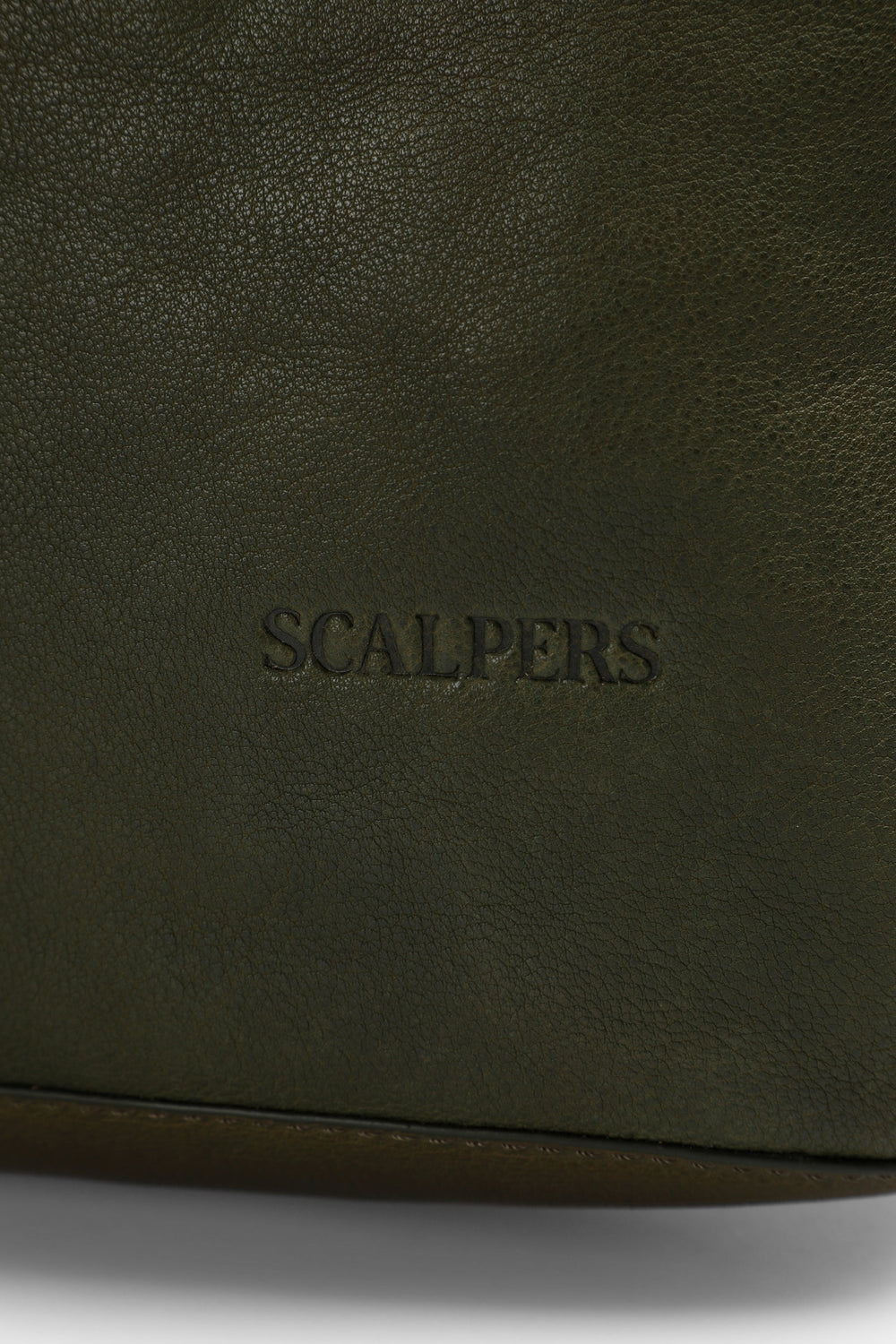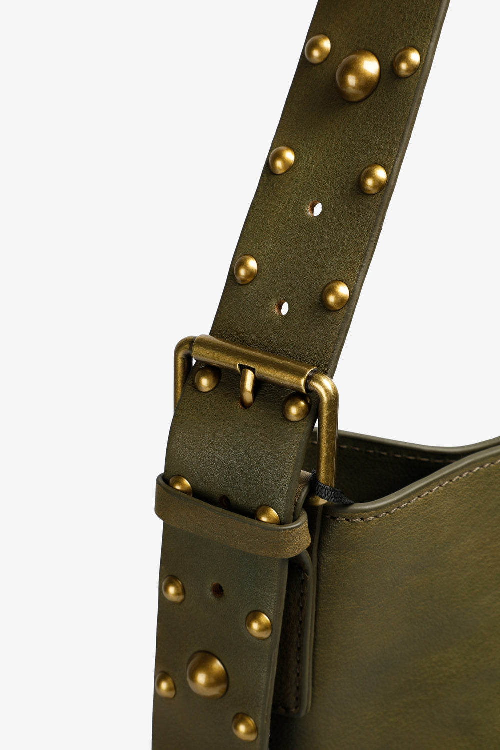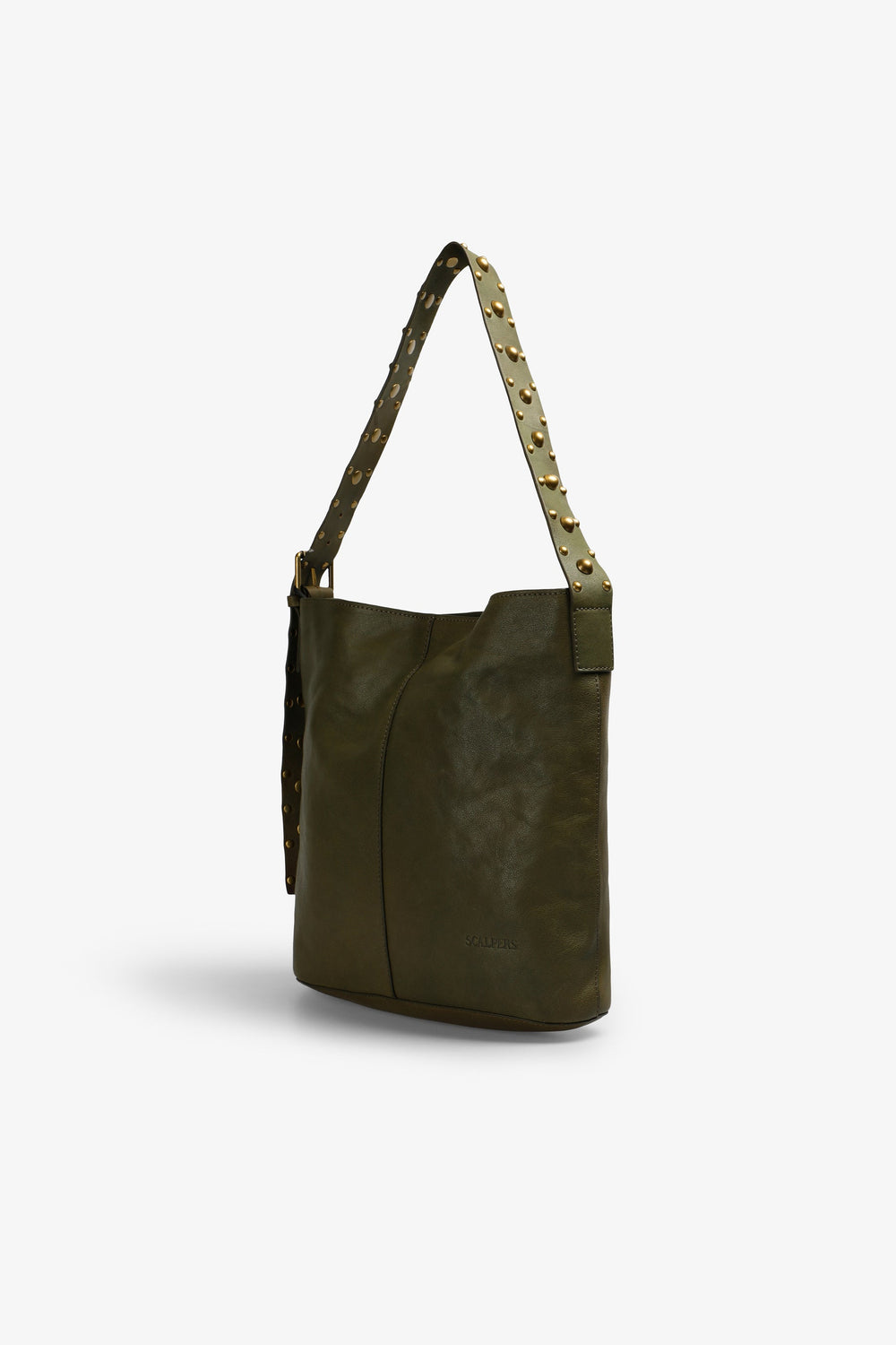Tote bag in 100% leather. Adjustable shoulder strap. Stud detail. Inner pocket. Tonal embroidered logo. Magnetic button closure.