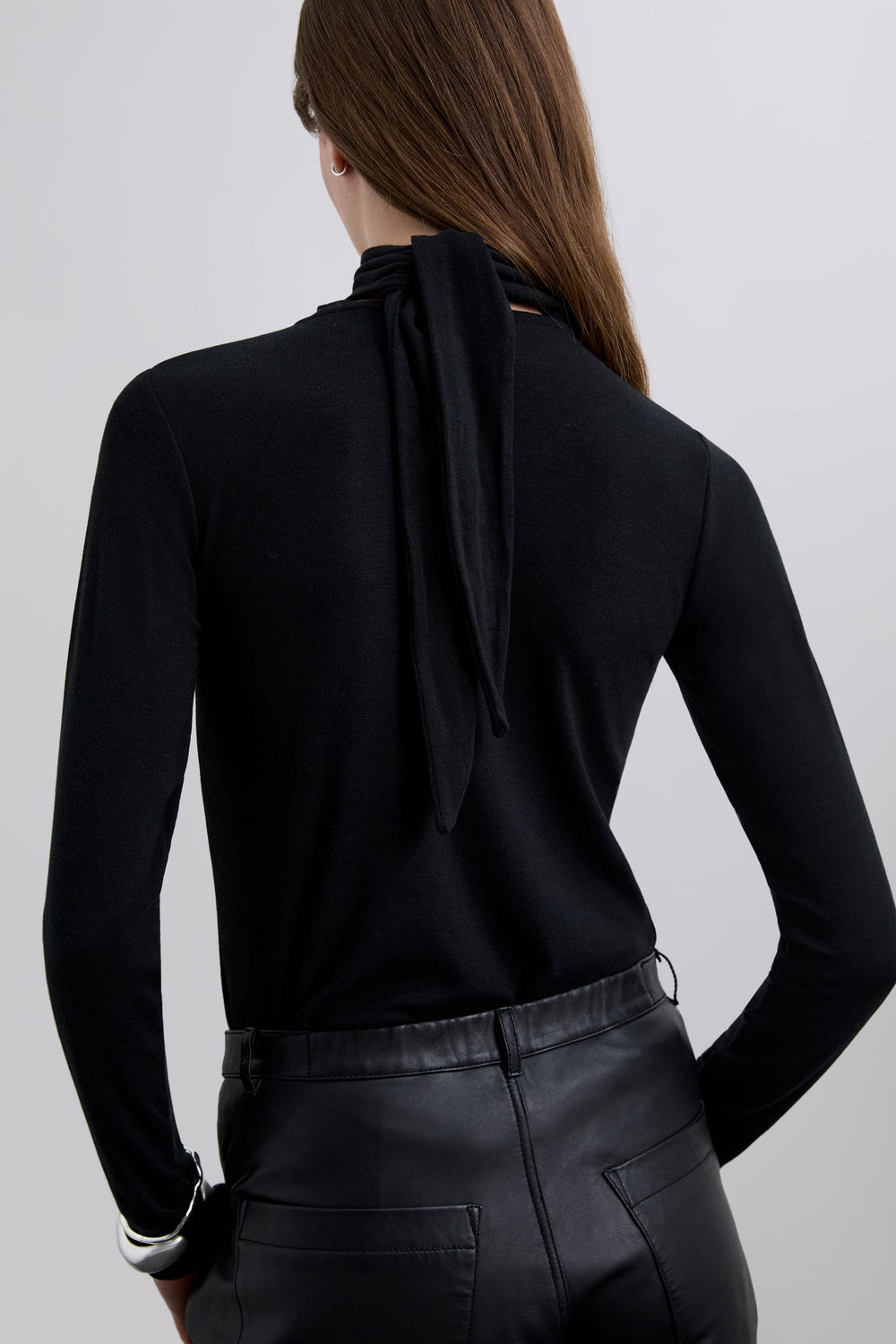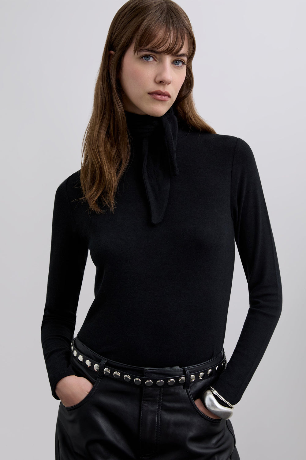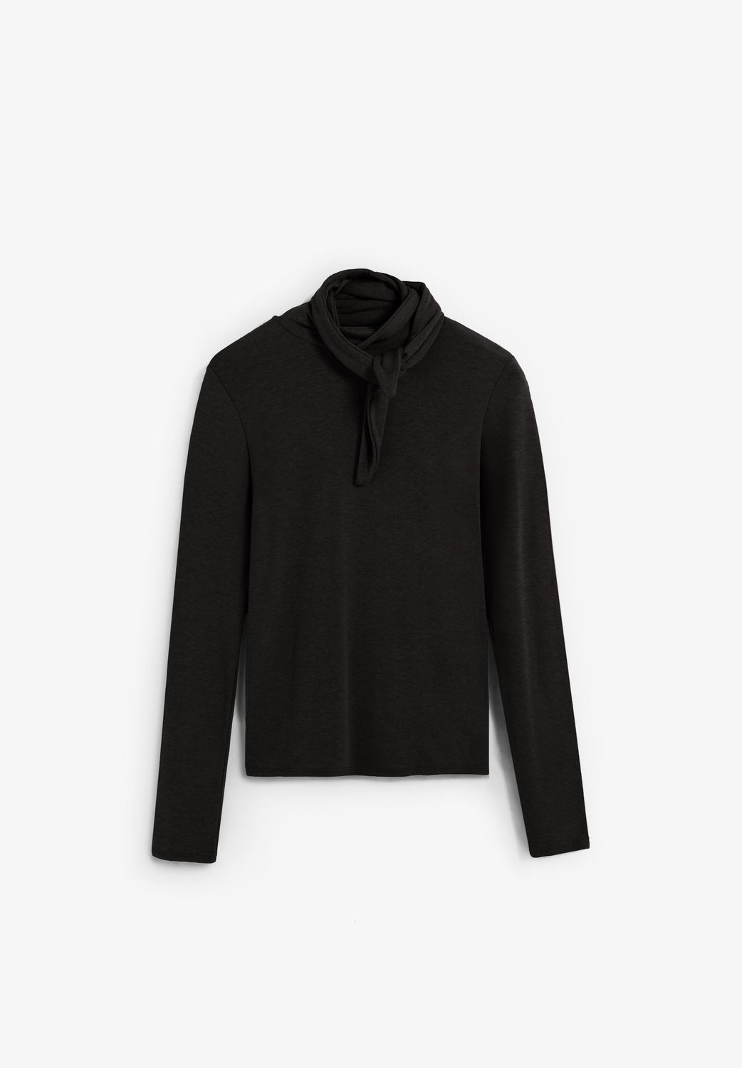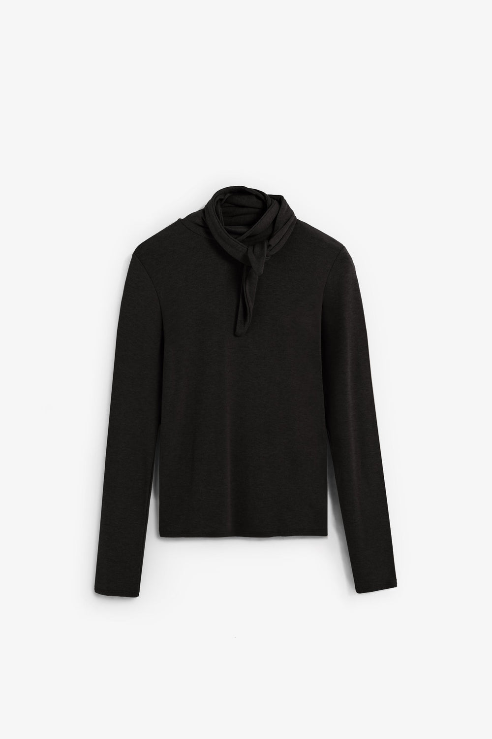 T-shirt with turn-down collar and scarf-style neck tie detail. Long sleeves. Slim fit.