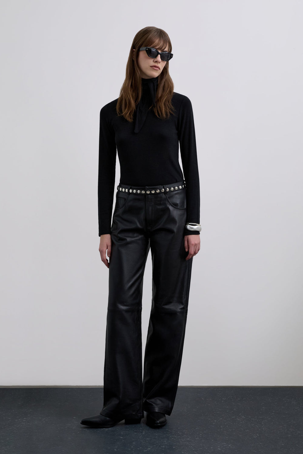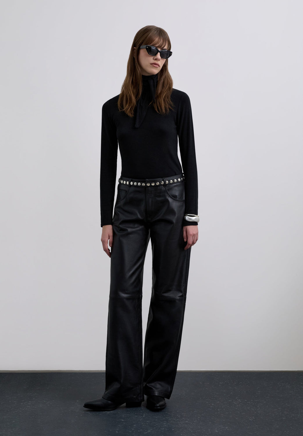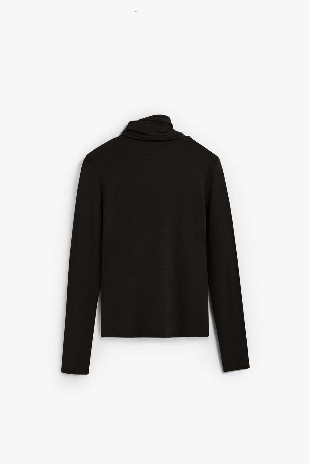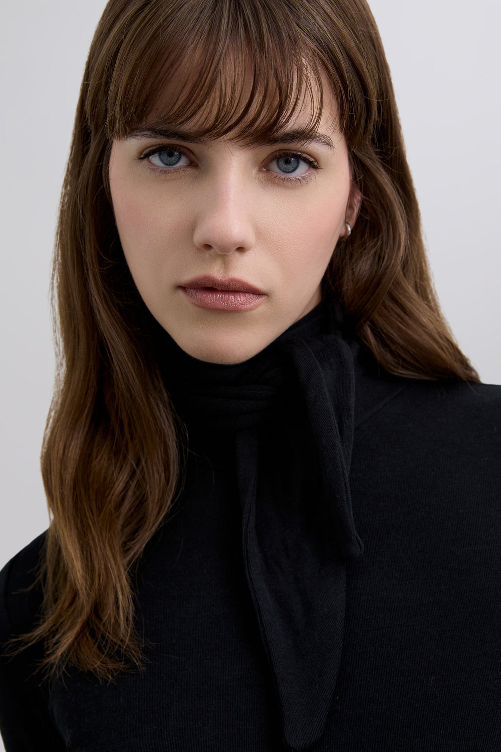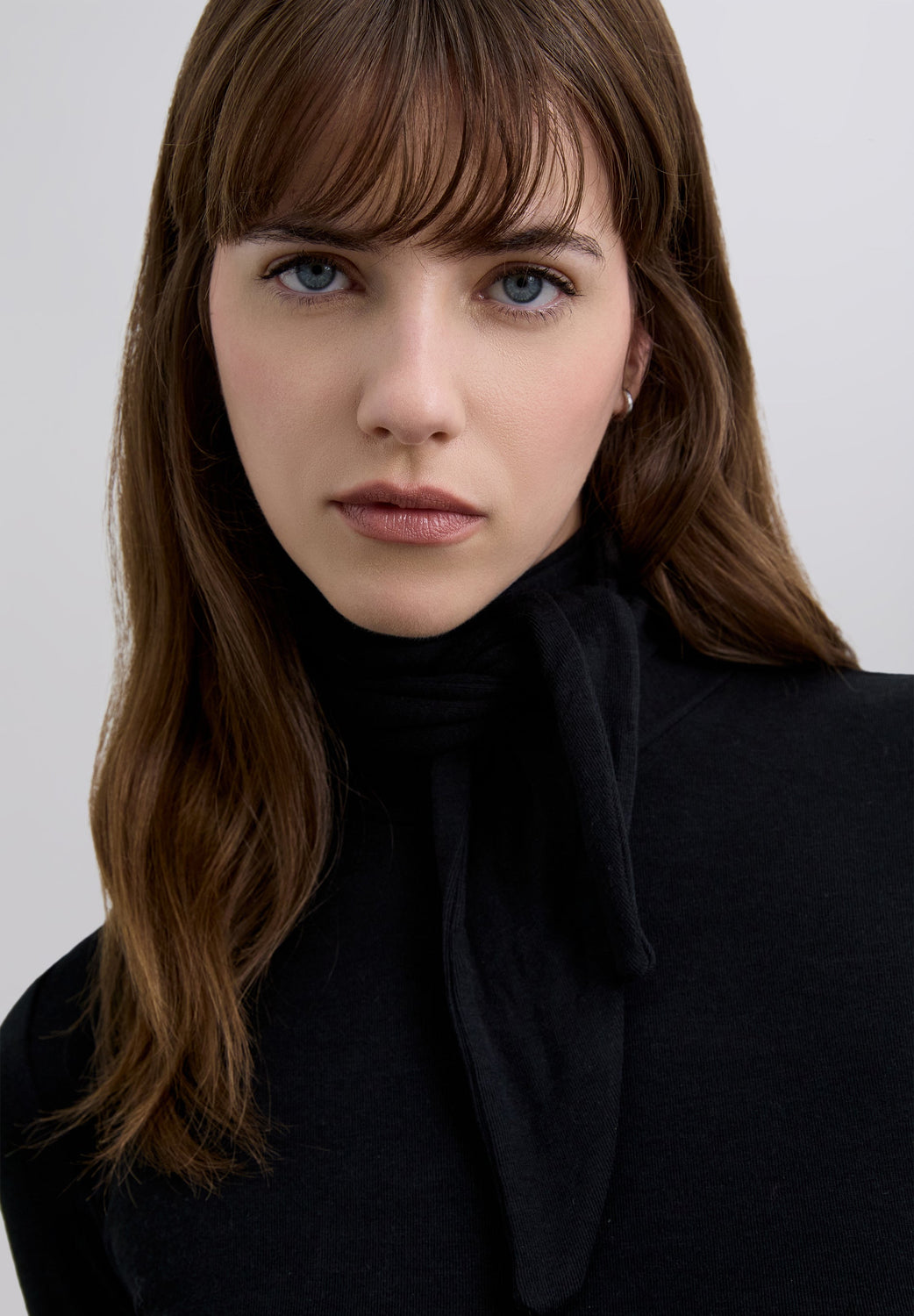 T-shirt with turn-down collar and scarf-style neck tie detail. Long sleeves. Slim fit.