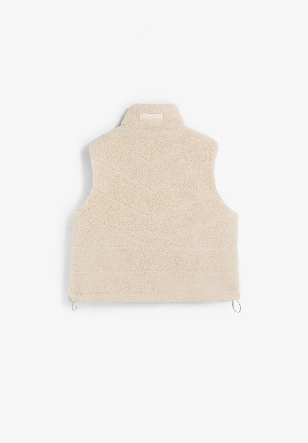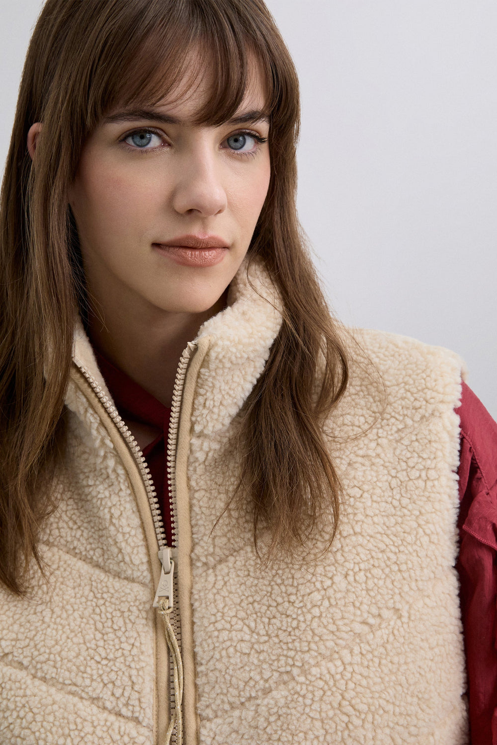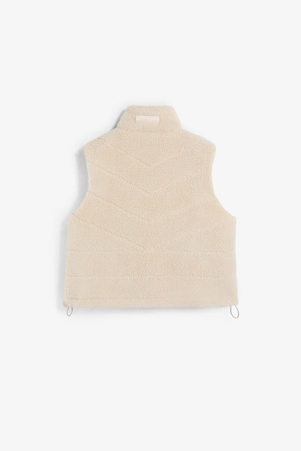 Fitted fleece gilet. Slim fit. Two front pockets. Adjustable drawstring hem. High collar. Front zip fastening.