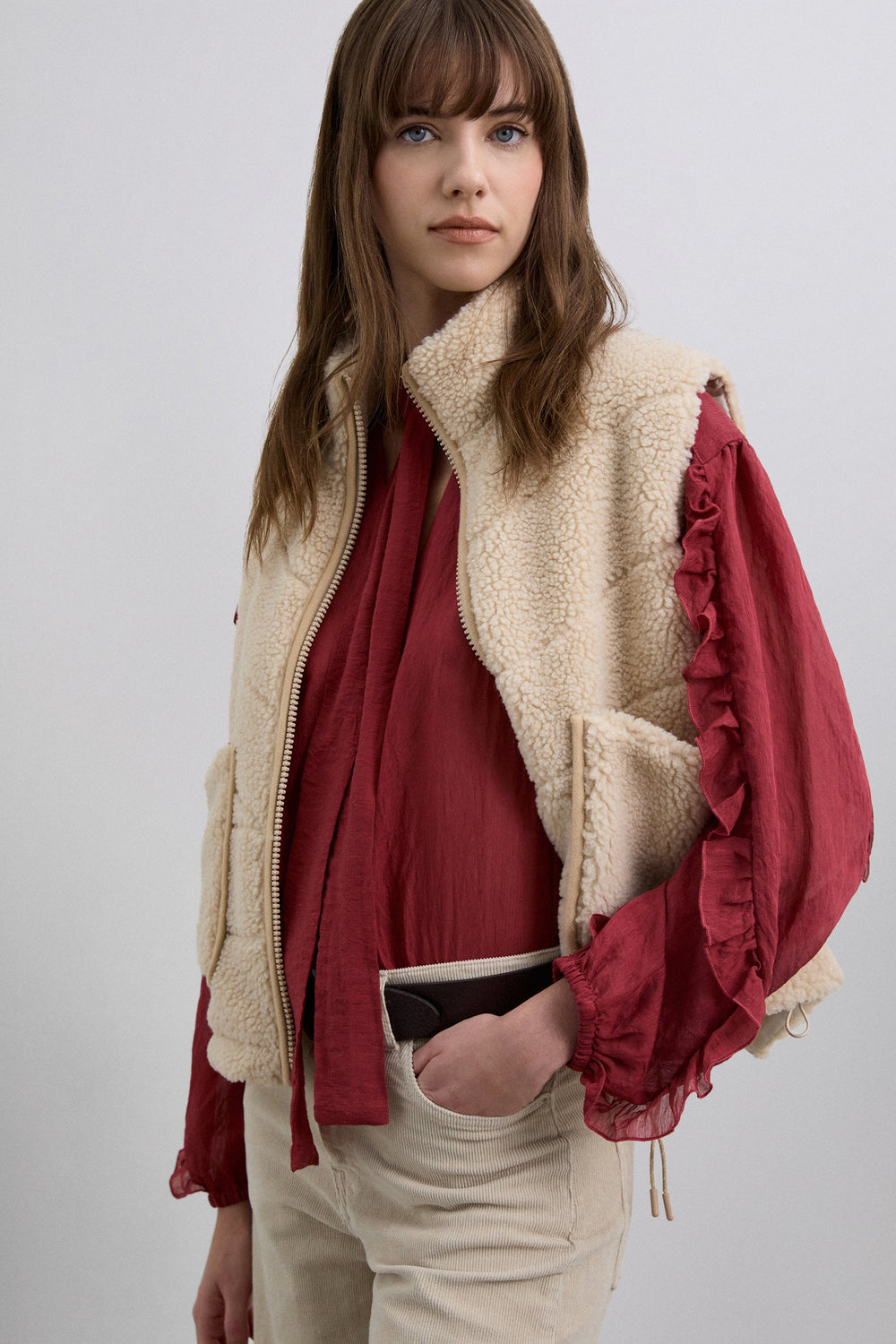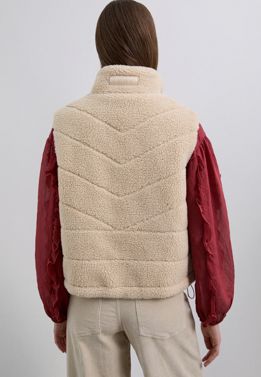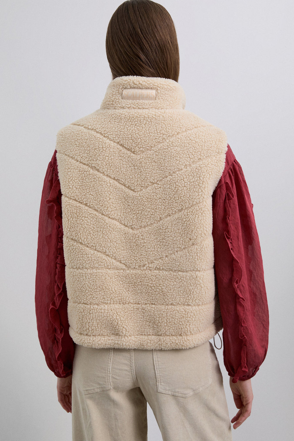 Fitted fleece gilet. Slim fit. Two front pockets. Adjustable drawstring hem. High collar. Front zip fastening.
