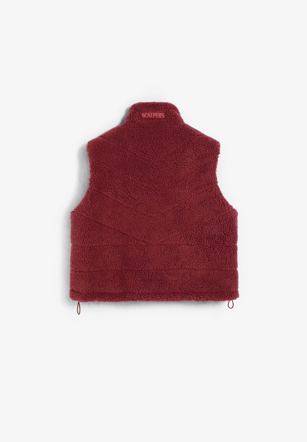 Fitted fleece gilet. Slim fit. Two front pockets. Adjustable drawstring hem. High collar. Front zip fastening.