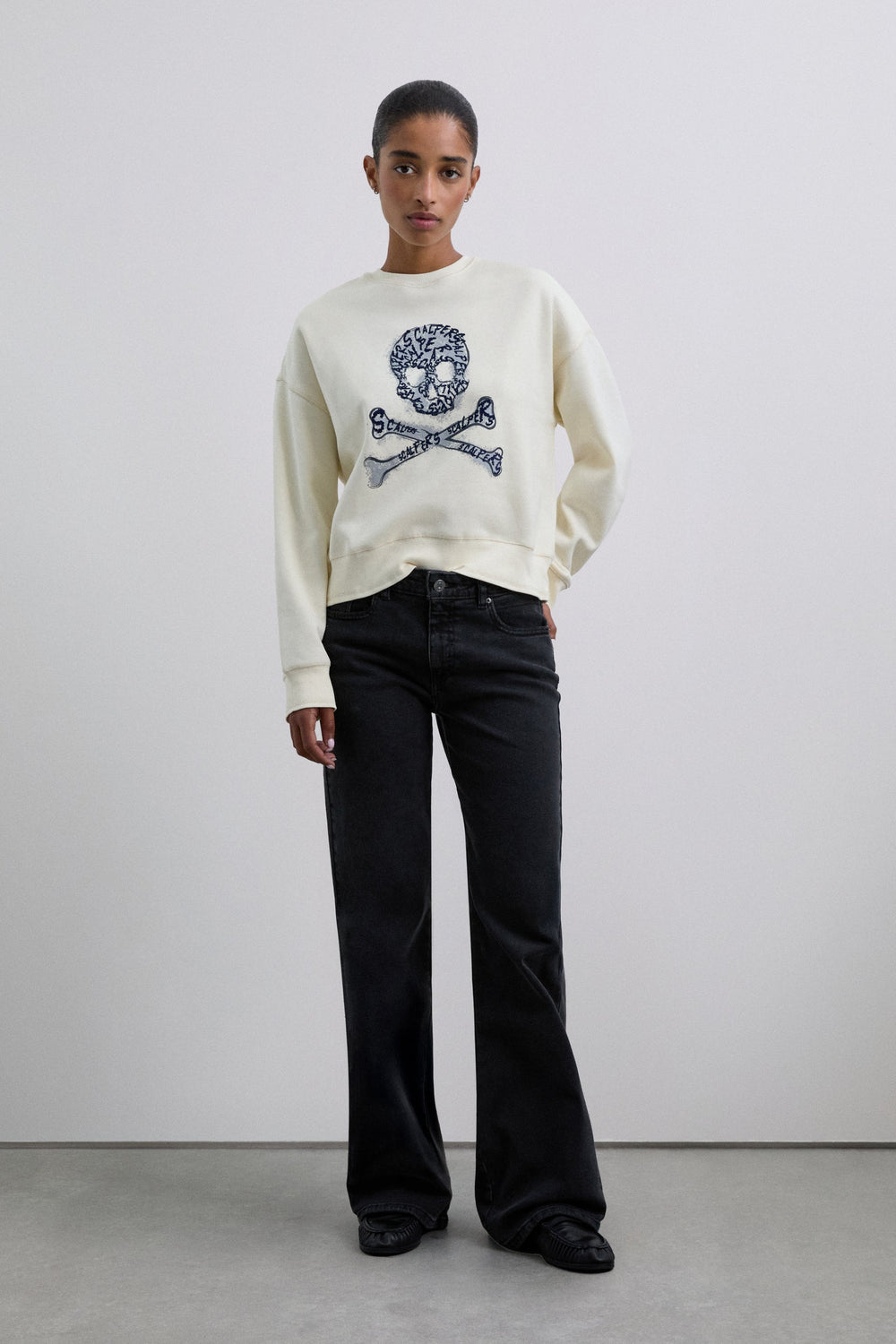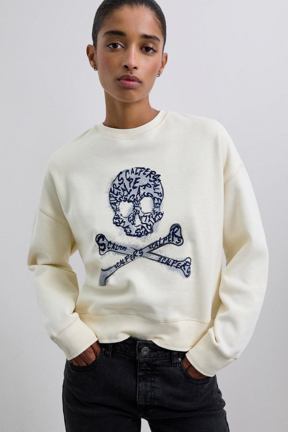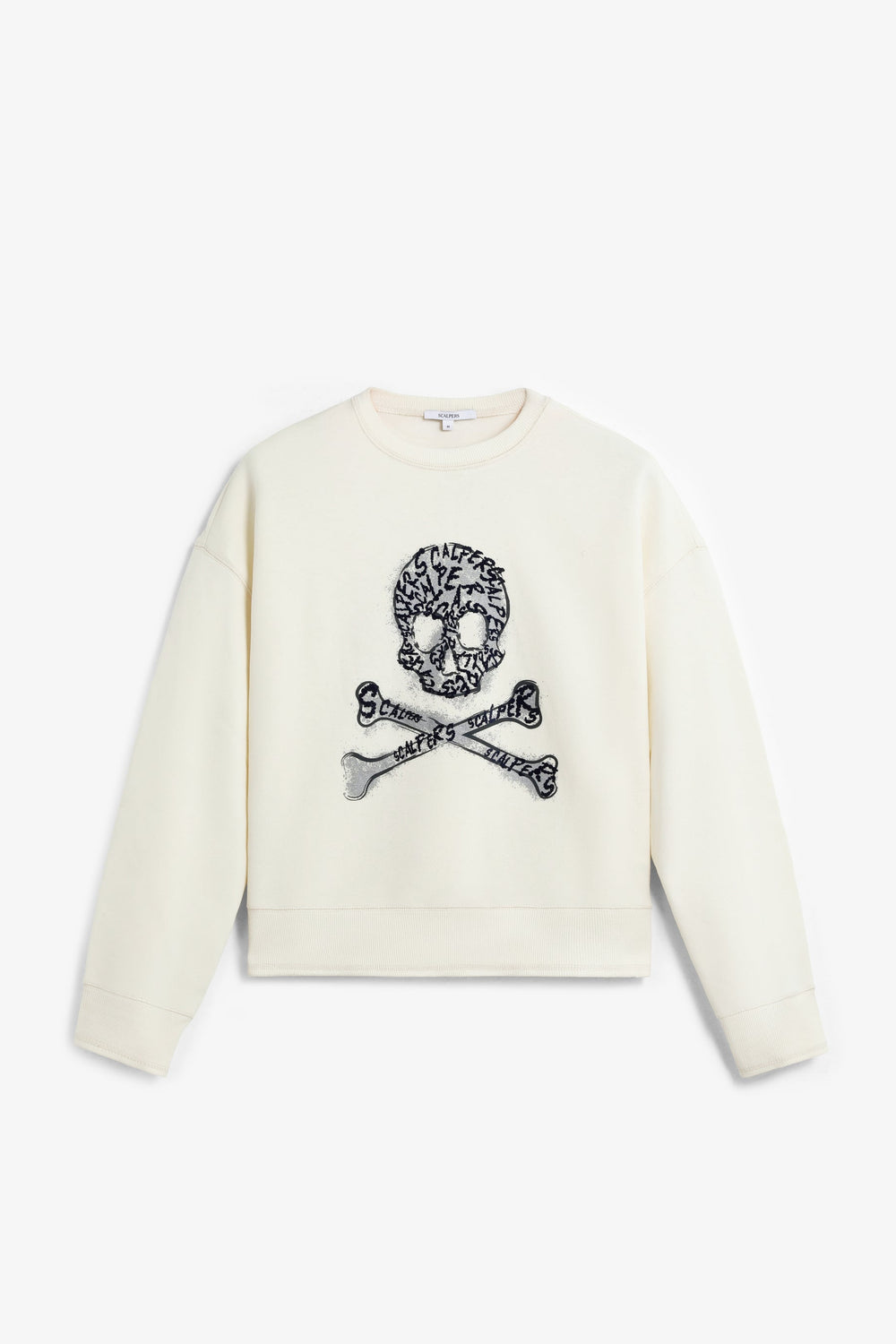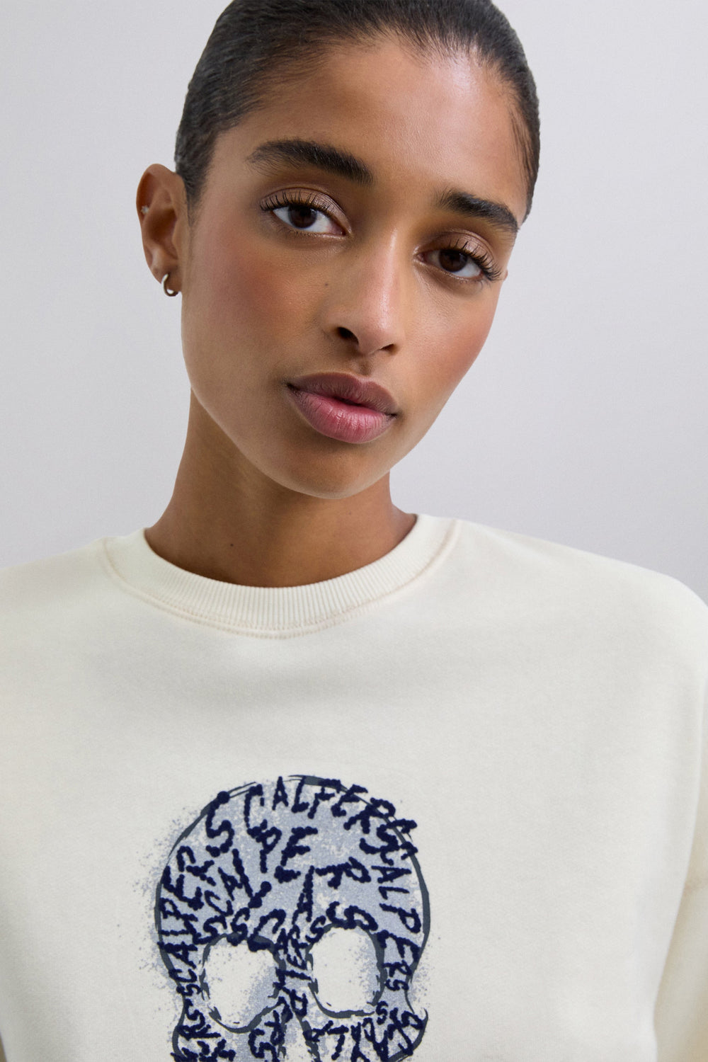 Sweatshirt made of 100% organic cotton. Regular fit, round neck and long sleeves with ribbed cuffs. Skull details with flock print on front.