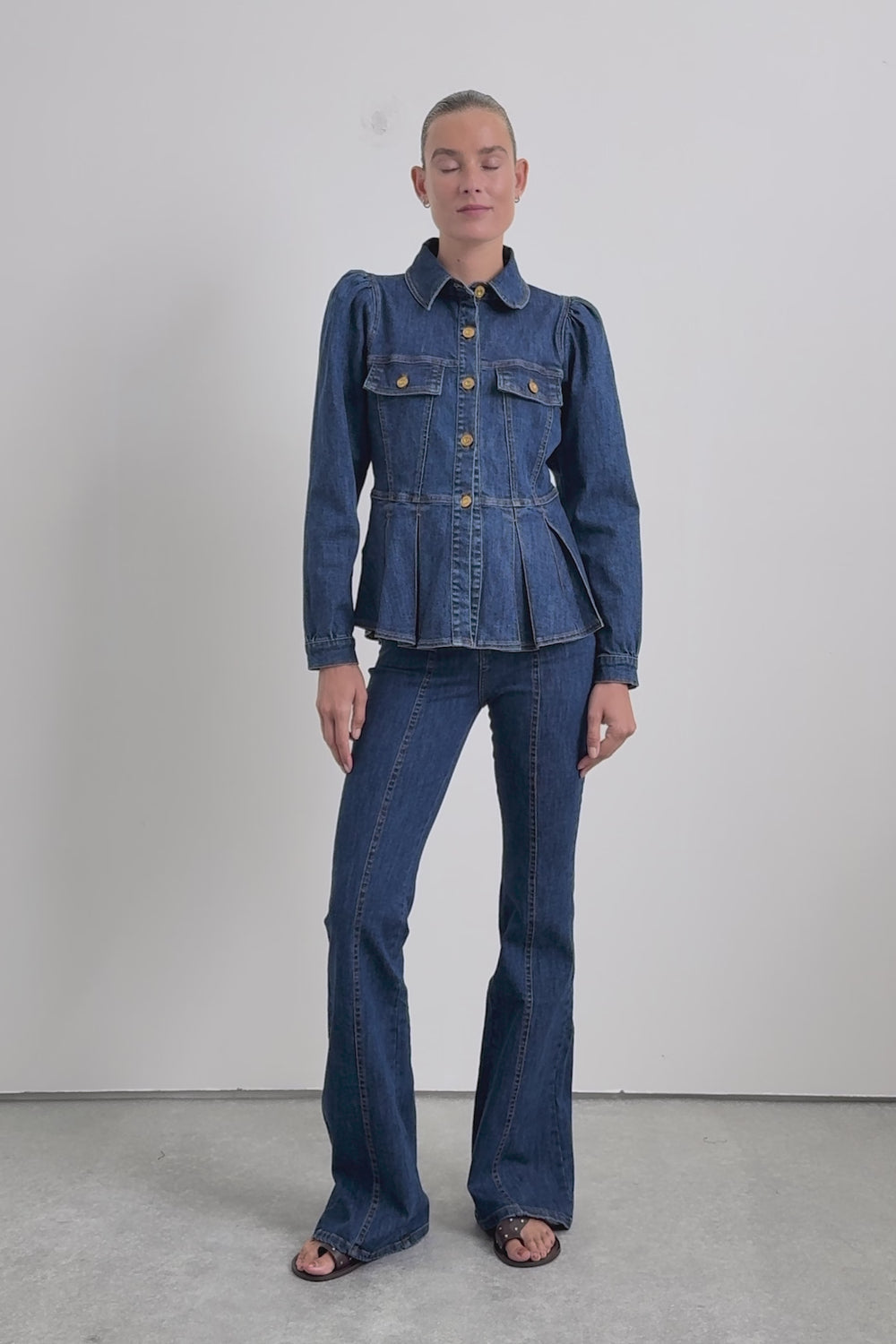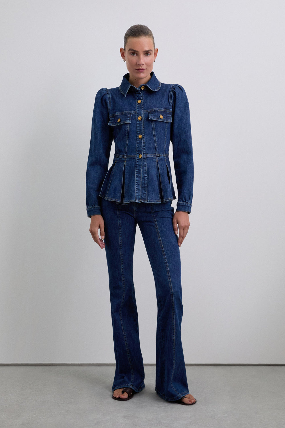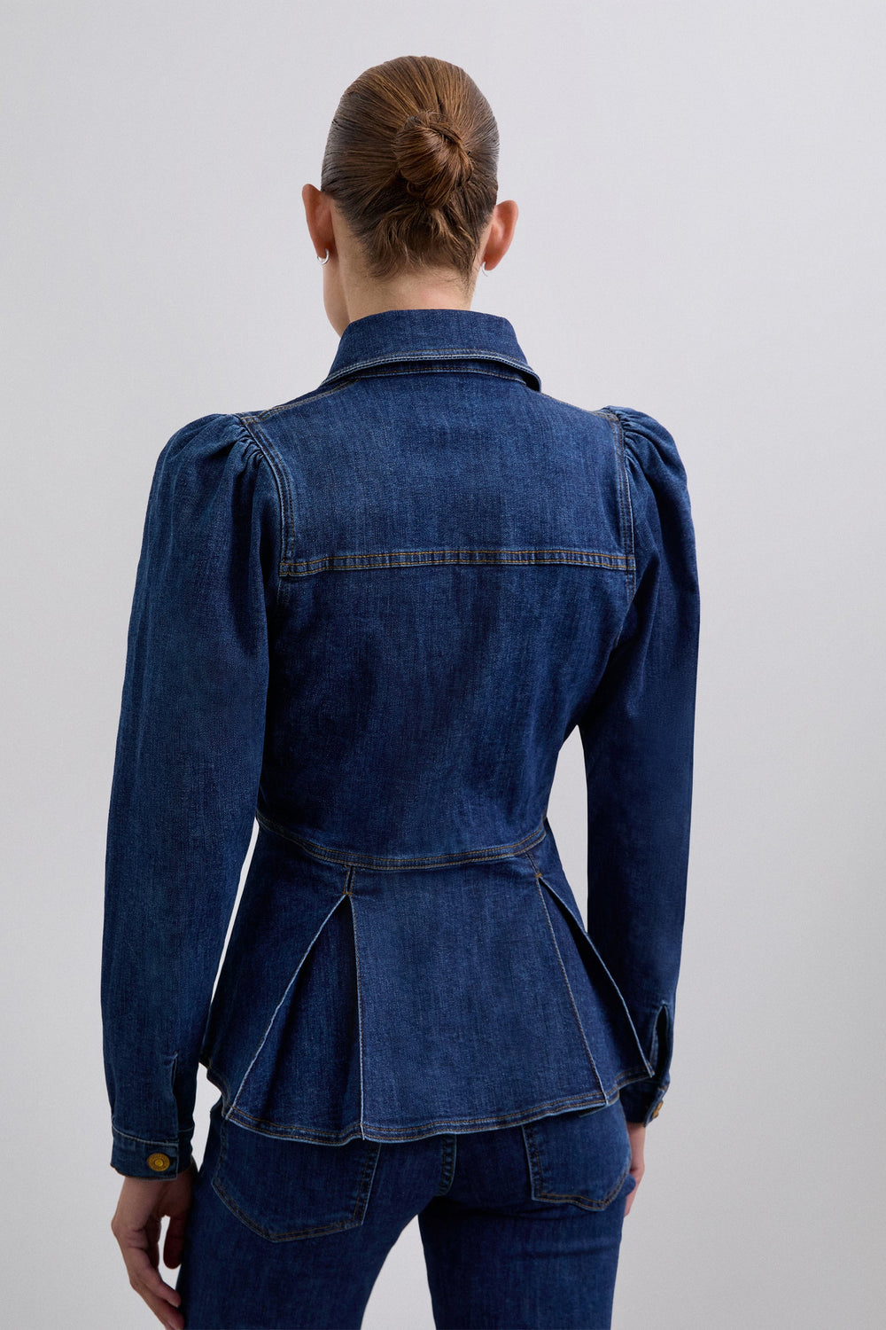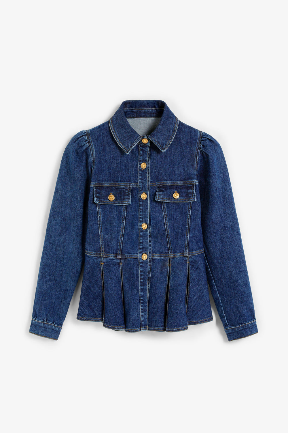 Denim shirt made of slightly stretchy cotton. Slim fit, button fastenings and long puff sleeves with buttons. Box pleat detail on the hem and gathers on the shoulders.