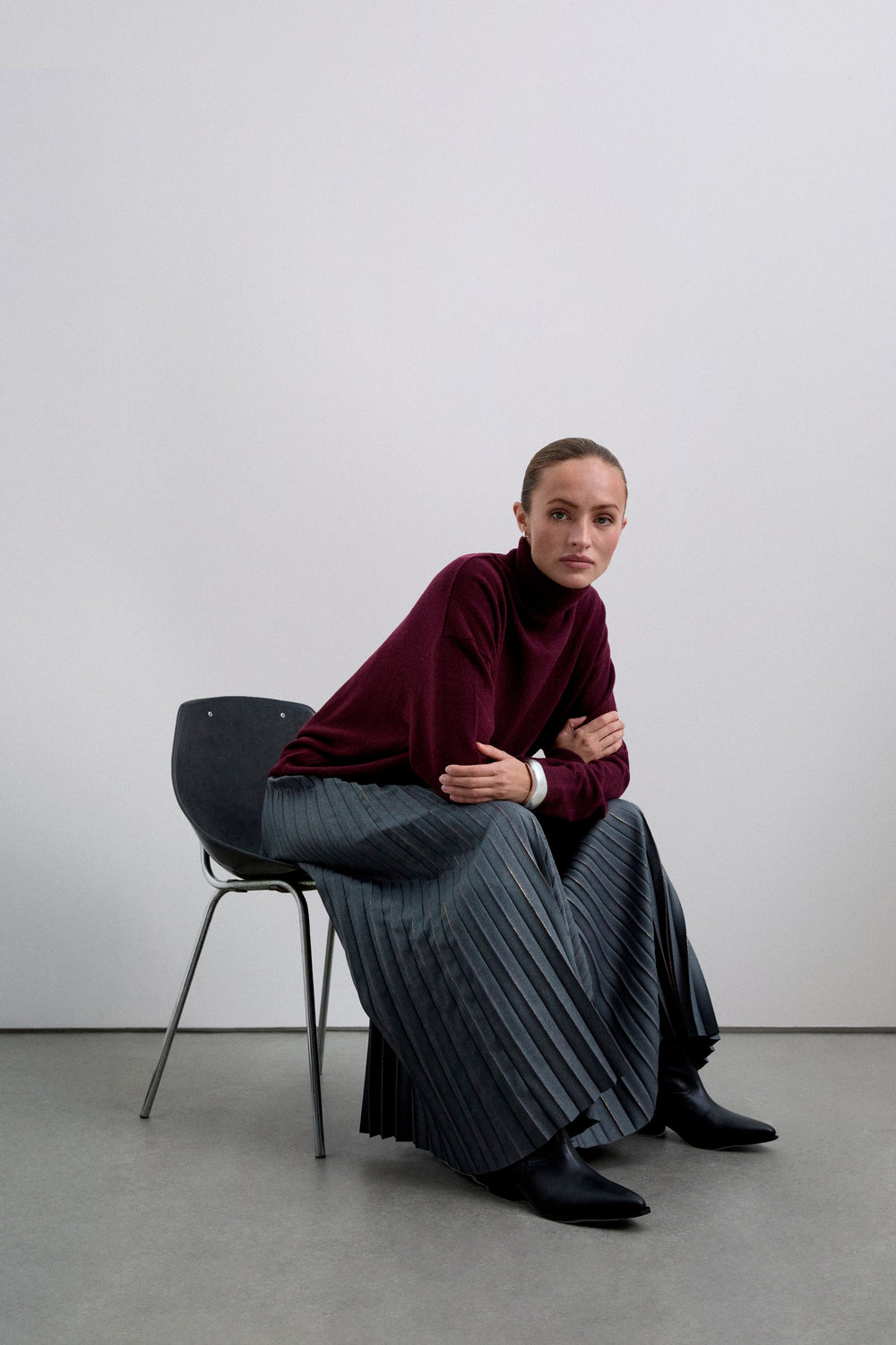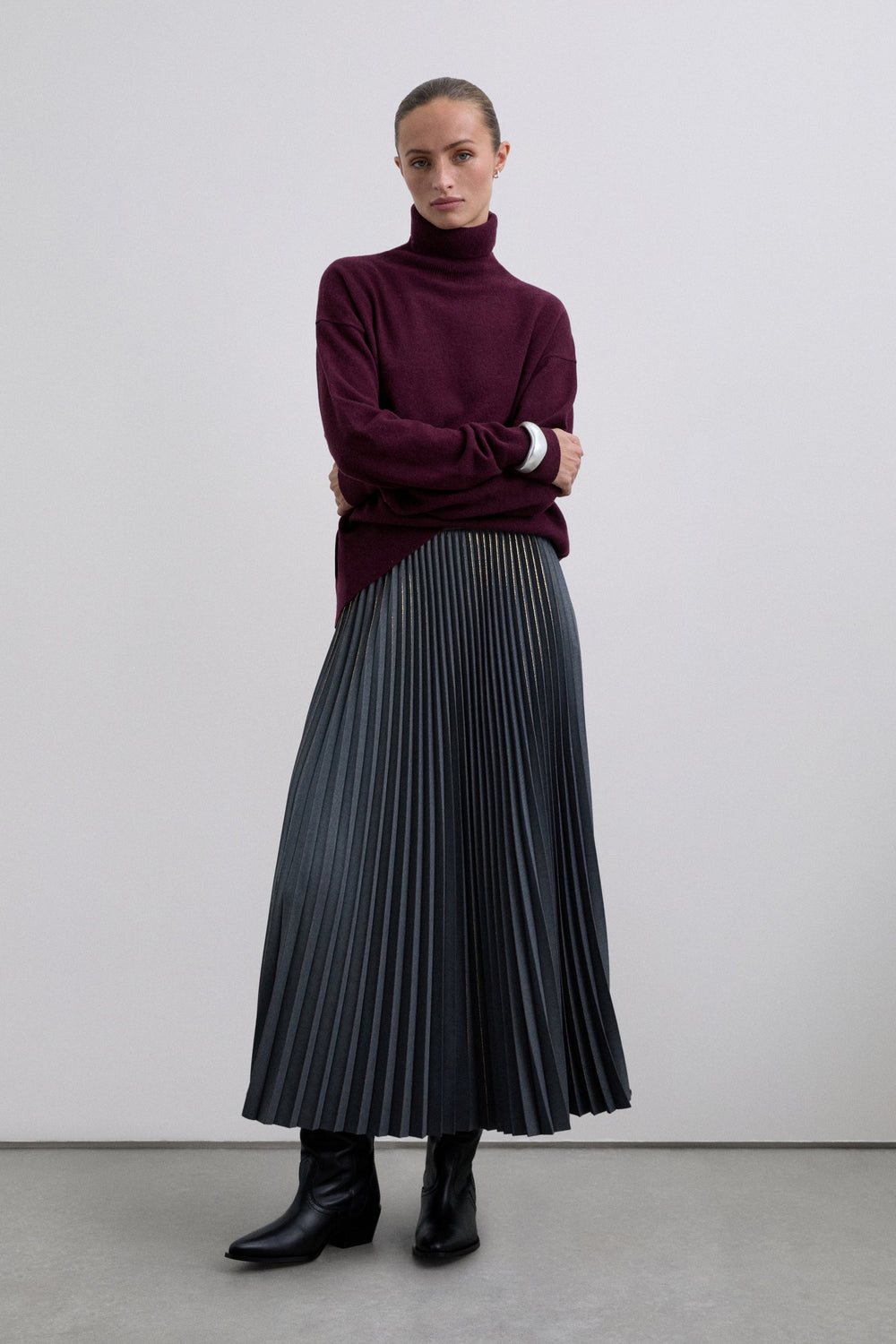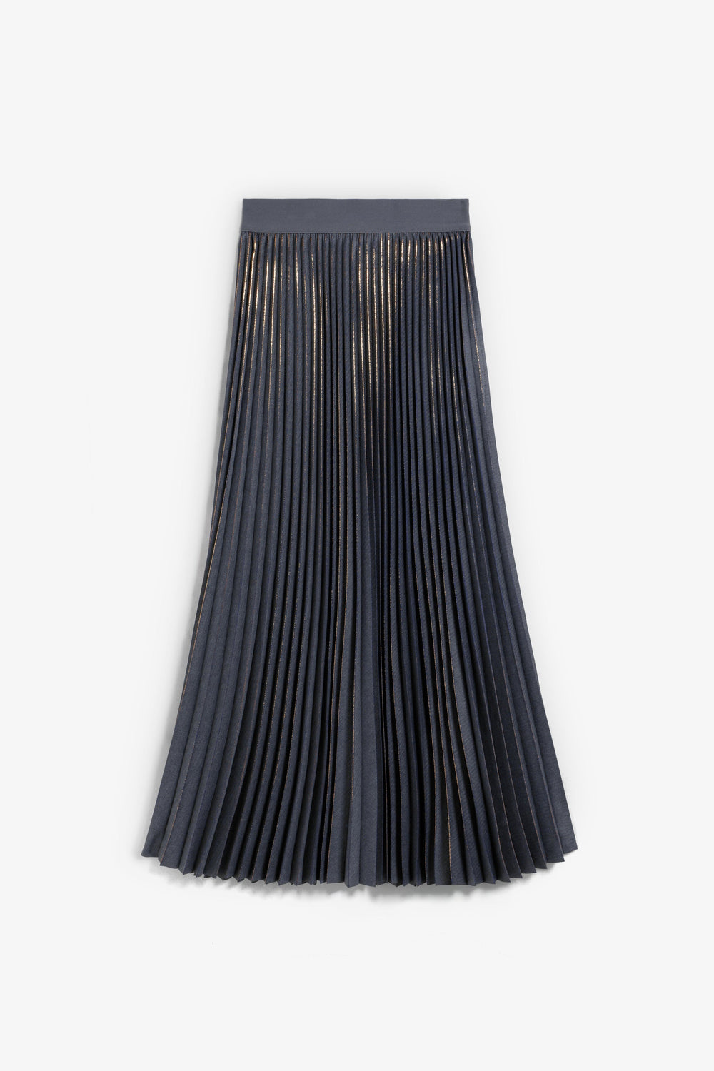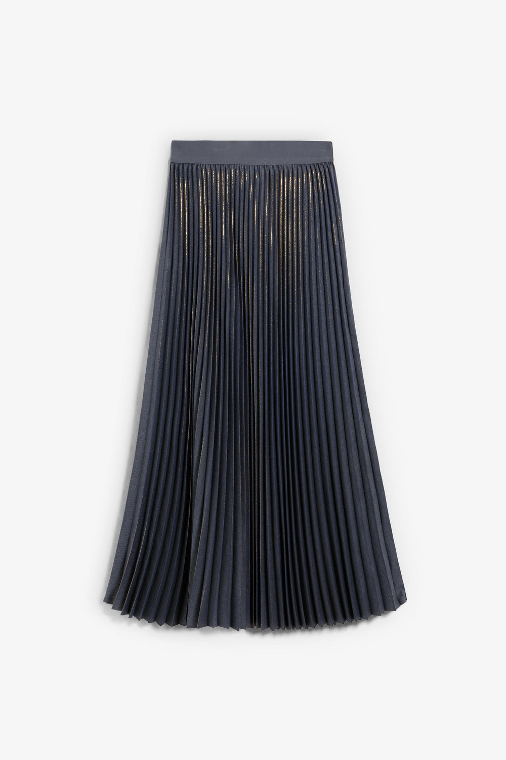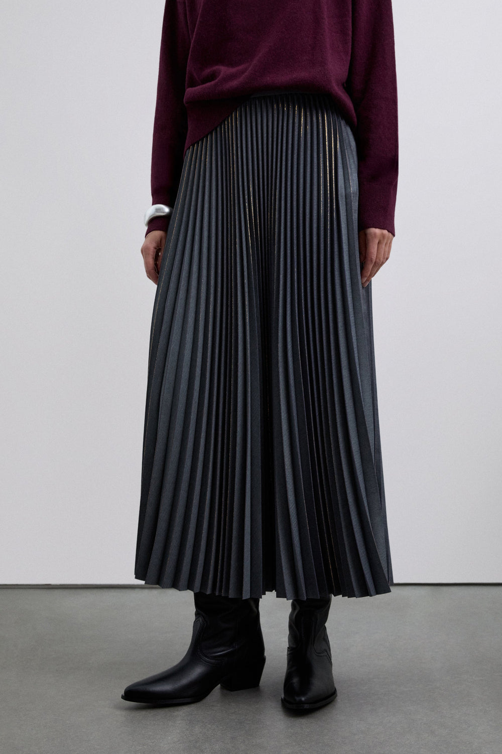 Pleated midi skirt made of flowing fabric with lurex details on the pleats. Regular fit. Elasticated waistband.
