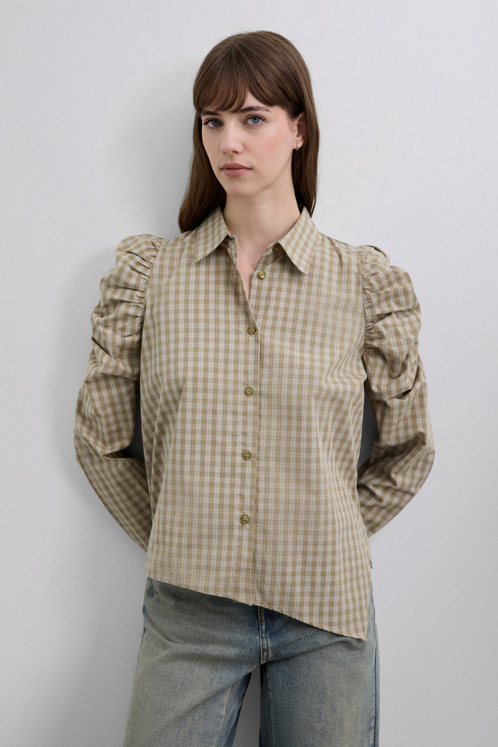 ASYMMETRIC PUFF SLEEVE SHIRT
