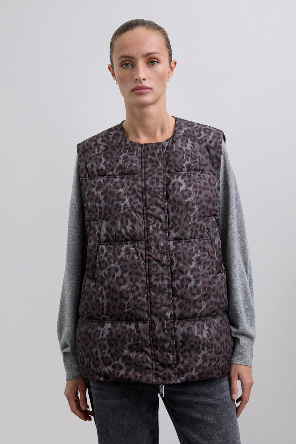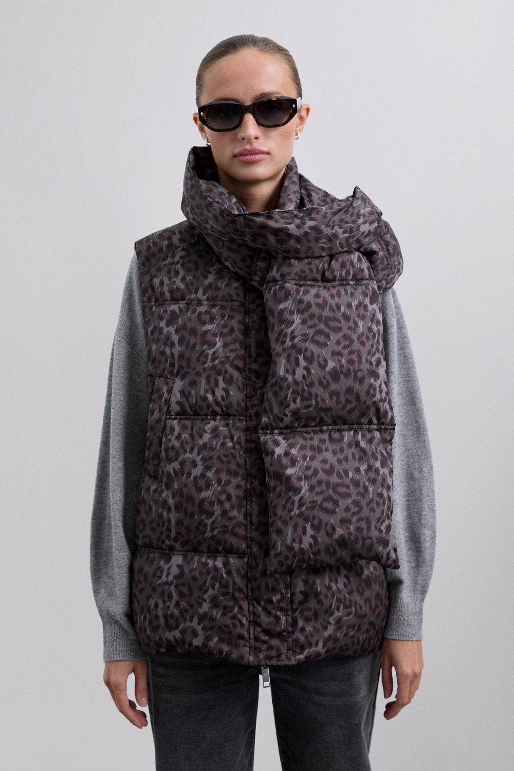 ANIMAL PRINT GILET WITH DETACHABLE SCARF
