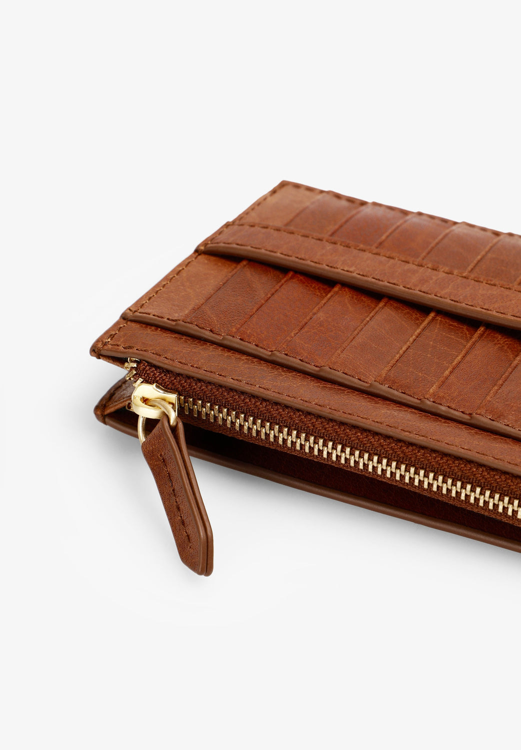 Wallet made of 100% leather. Contrast logo detail. Built-in strap for added security and convenience.