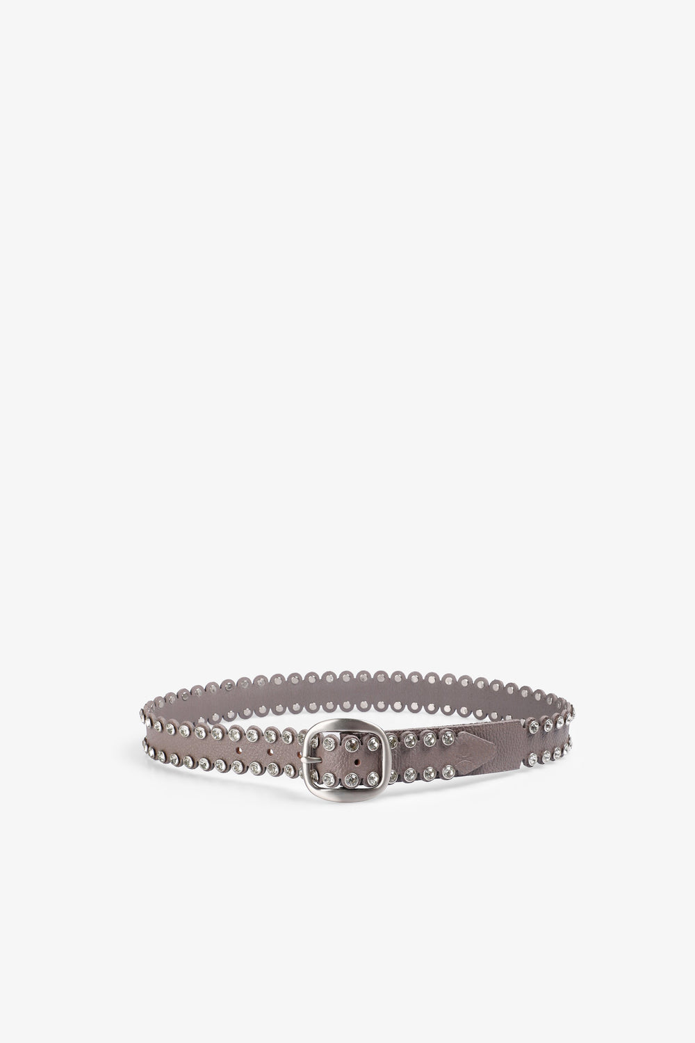 Belt made of 100% leather. Printed logo. Silver buckle and rhinestone detail.