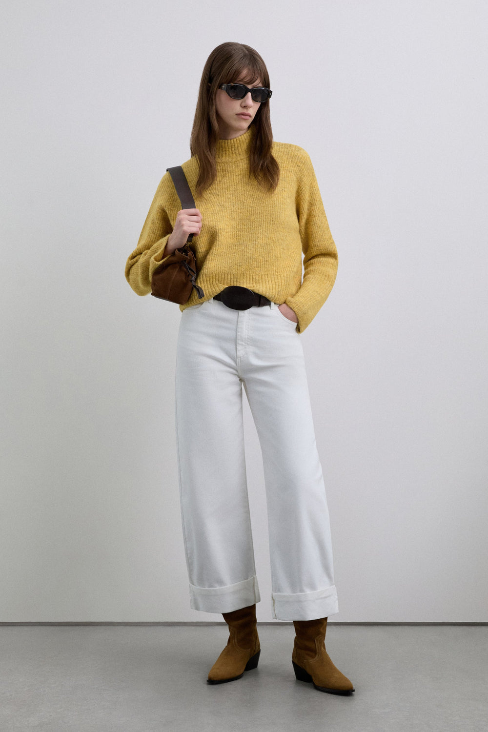 Simple design sweater with high neck and long sleeves. Straight, regular fit.