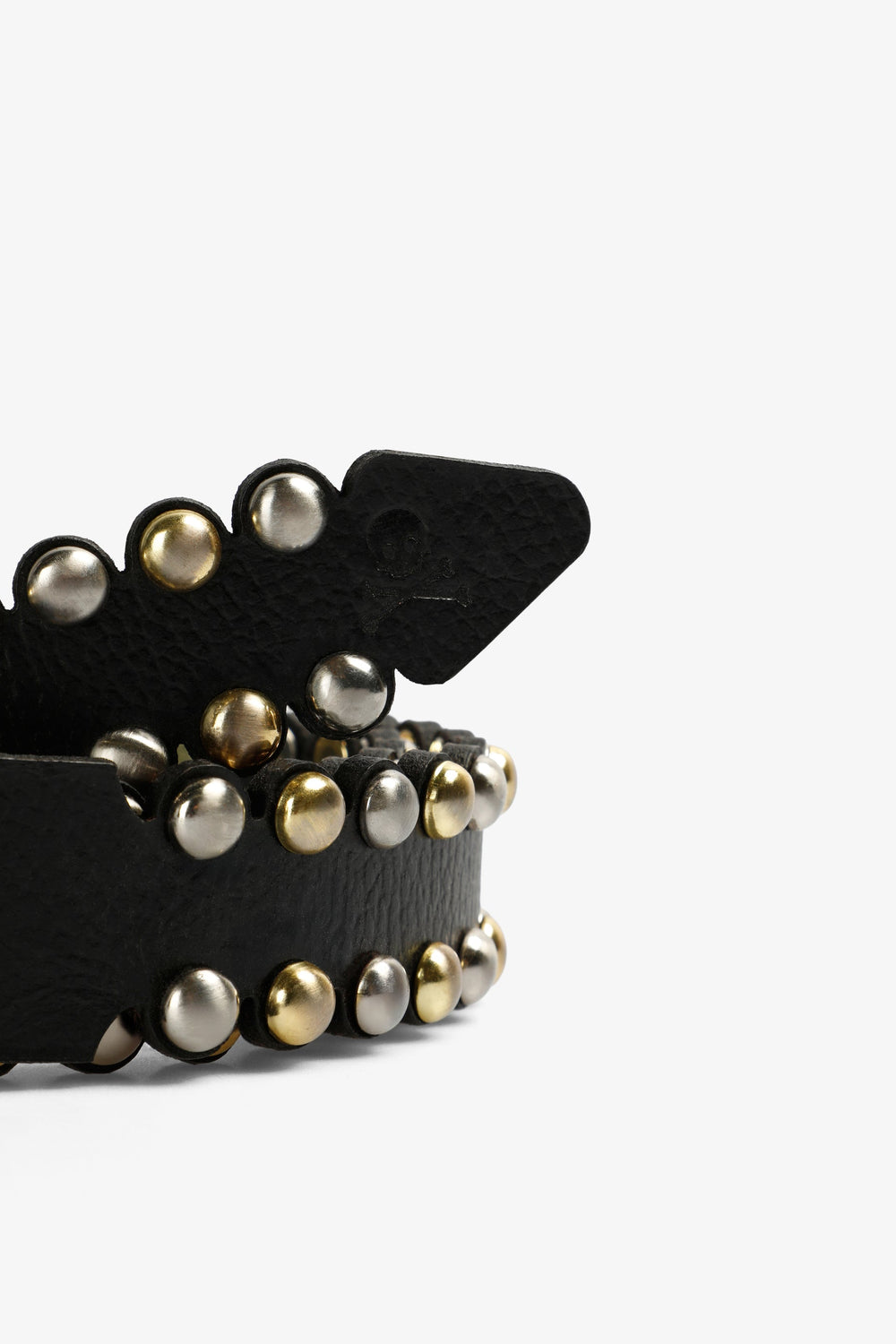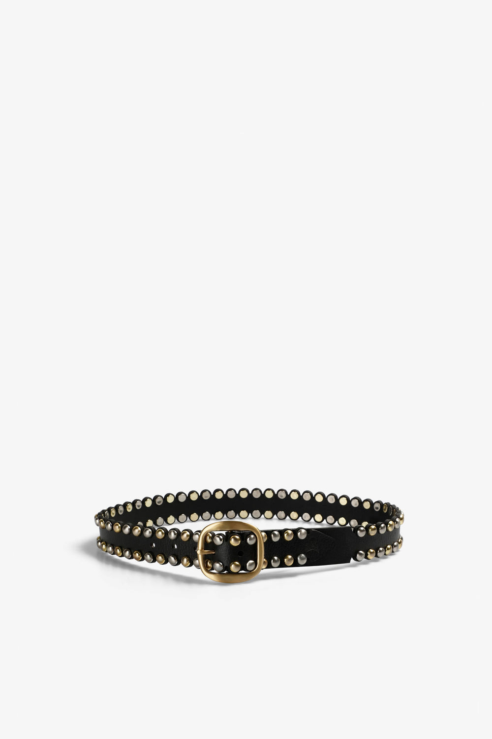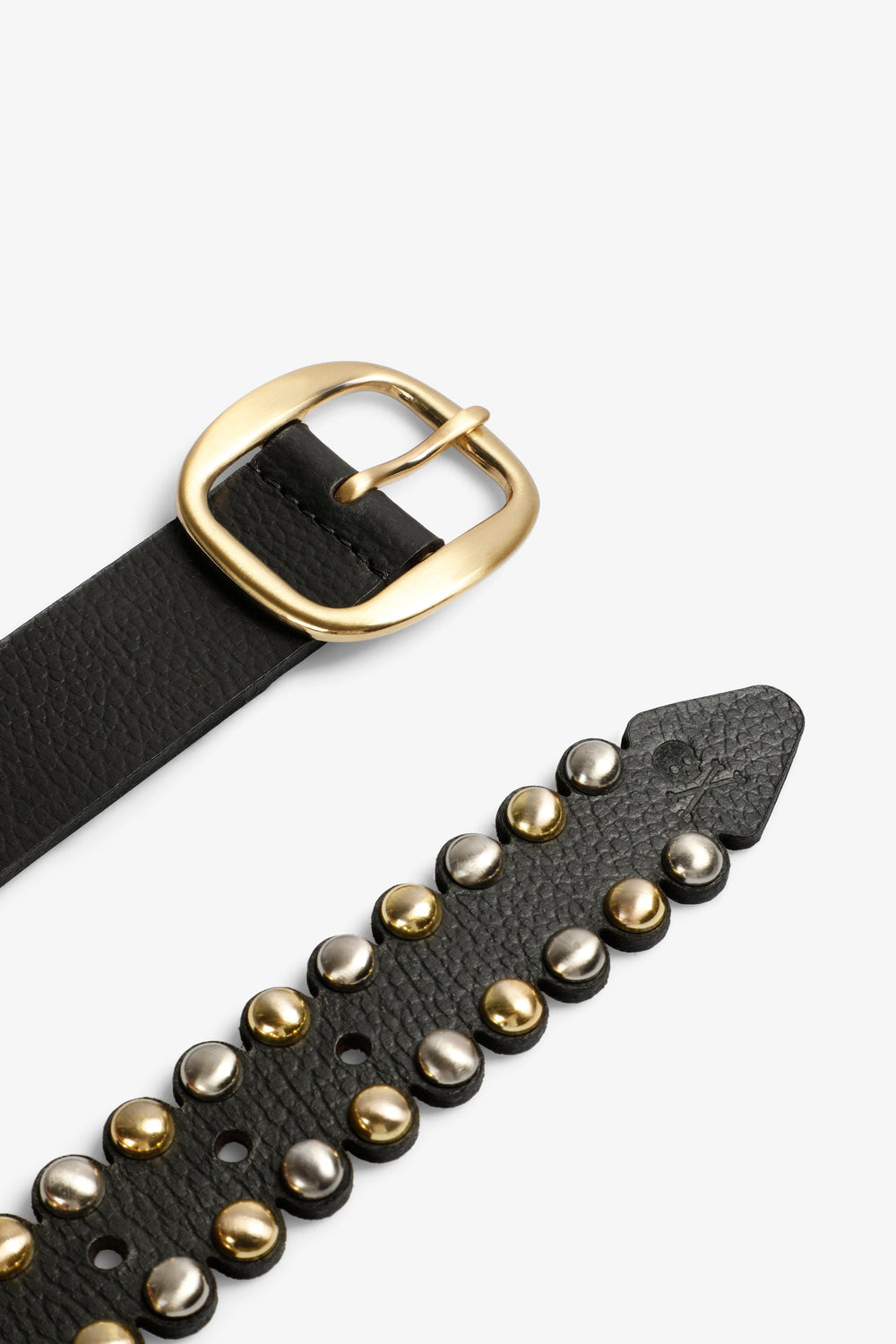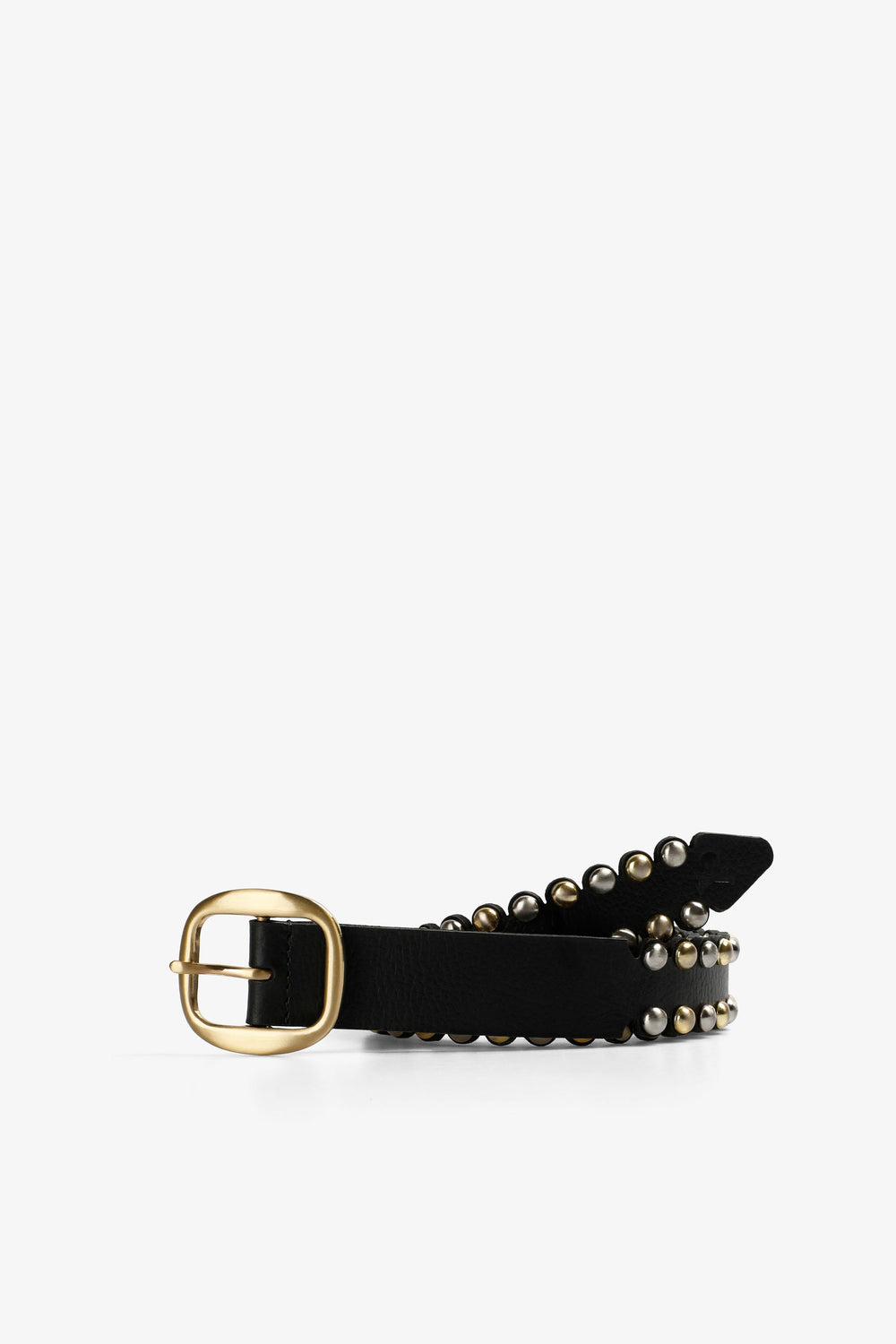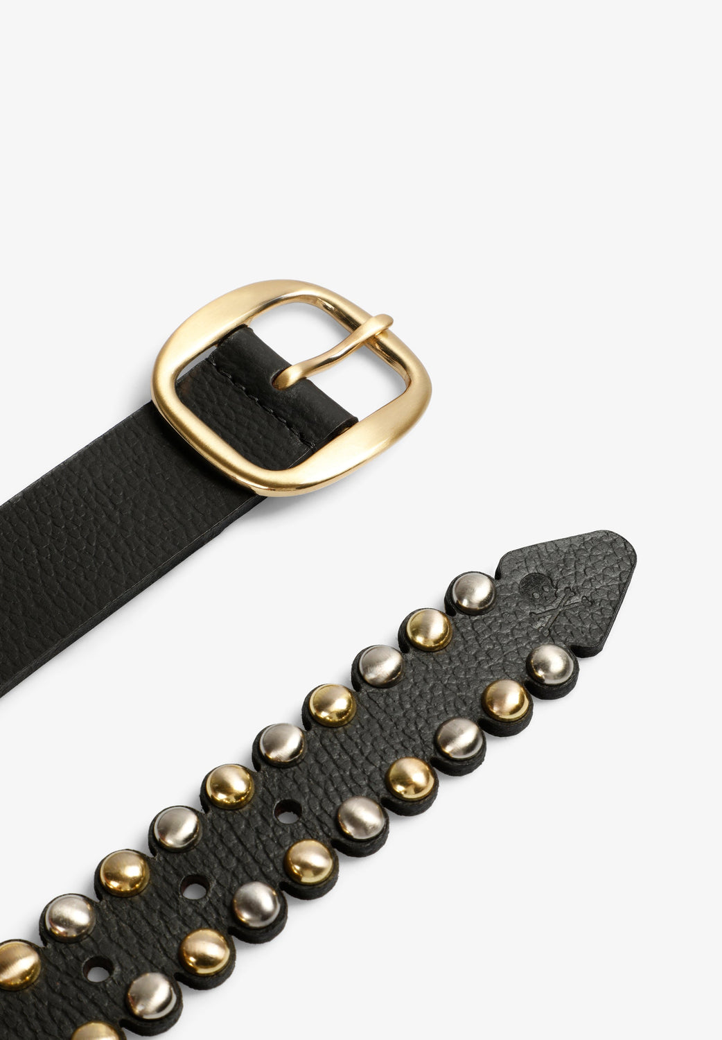 Belt made of 100% leather. Printed logo. Golden buckle and silver- and gold-toned studs.