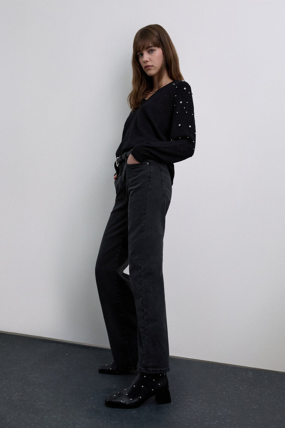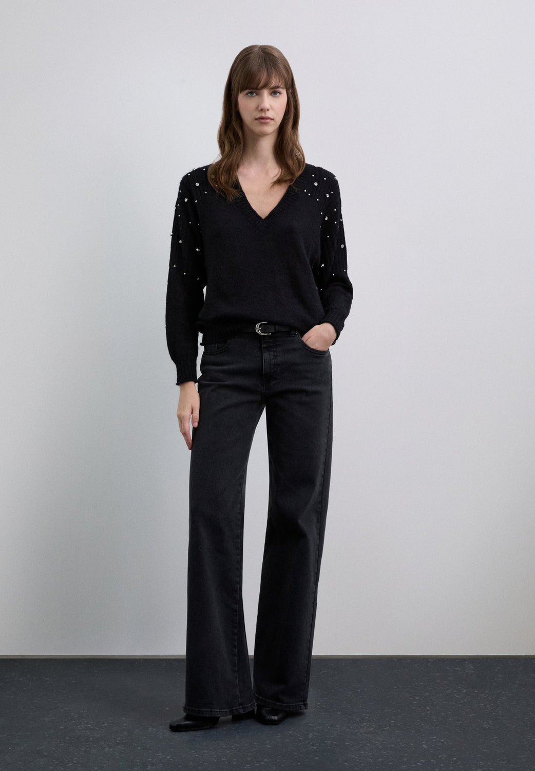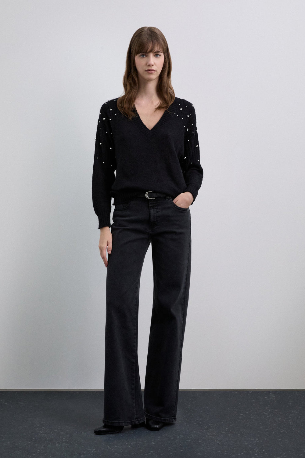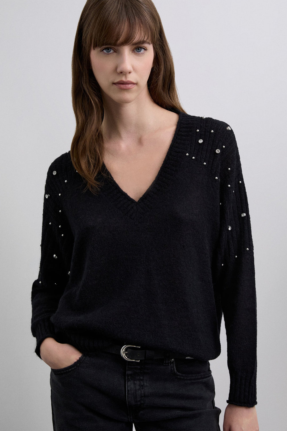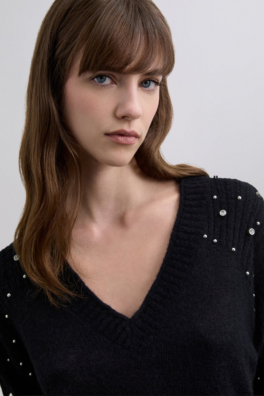 Sweater made of a knitted wool blend. Regular fit. V-neck. Long sleeves with ribbed cuffs. Studded detailing on the shoulders and sleeves