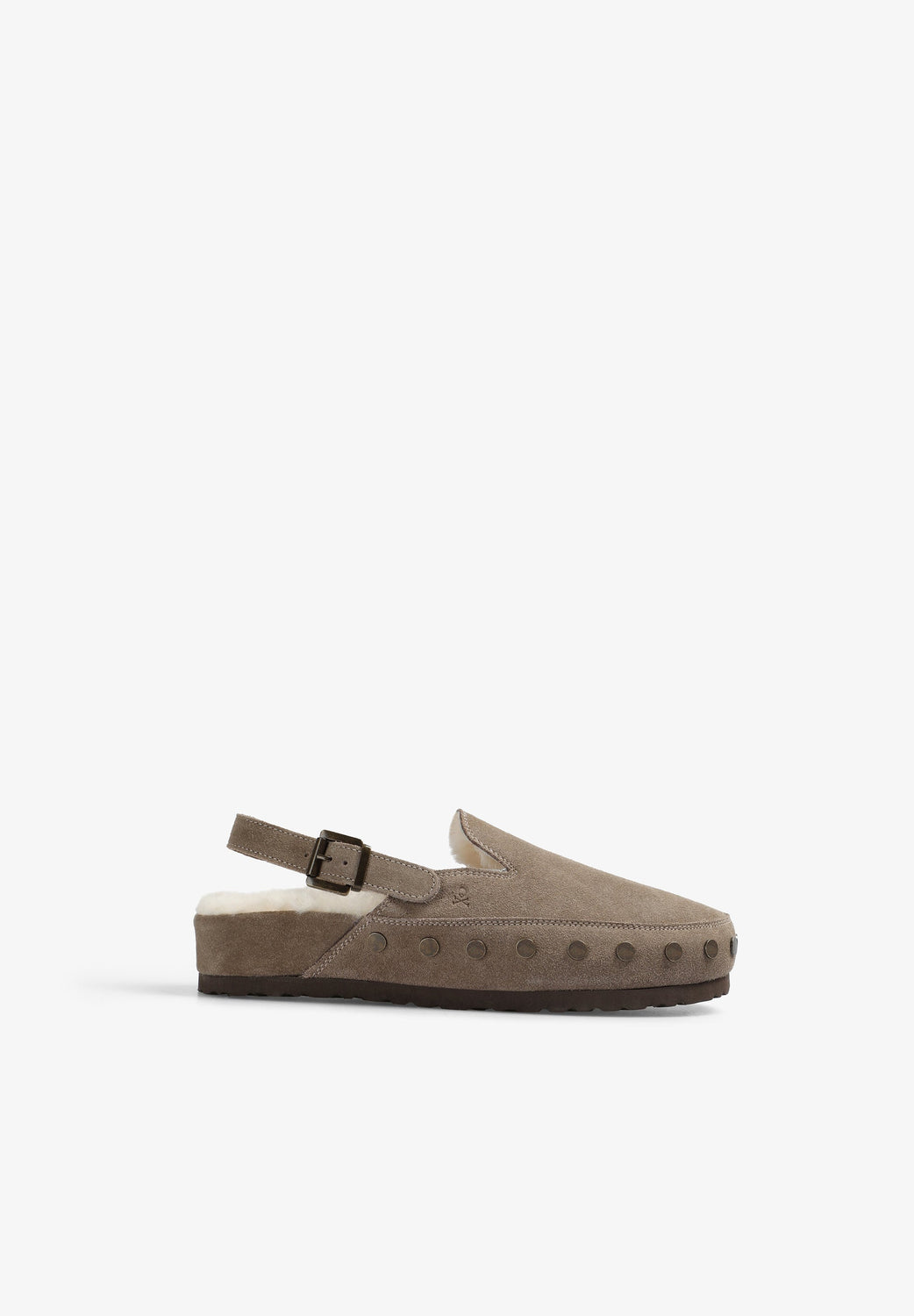 Clogs in 100% leather. 100% fur inners. Stud detail. Adjustable strap and buckle fastening. Tonal embroidered logo.