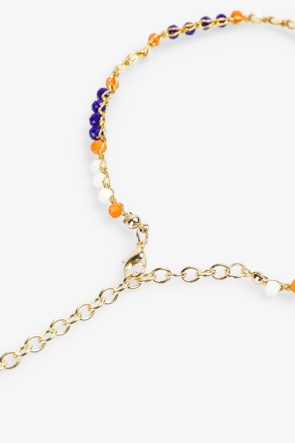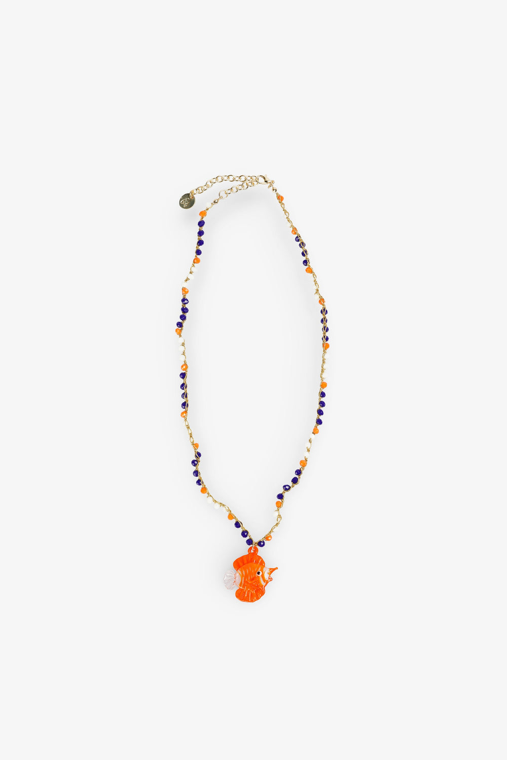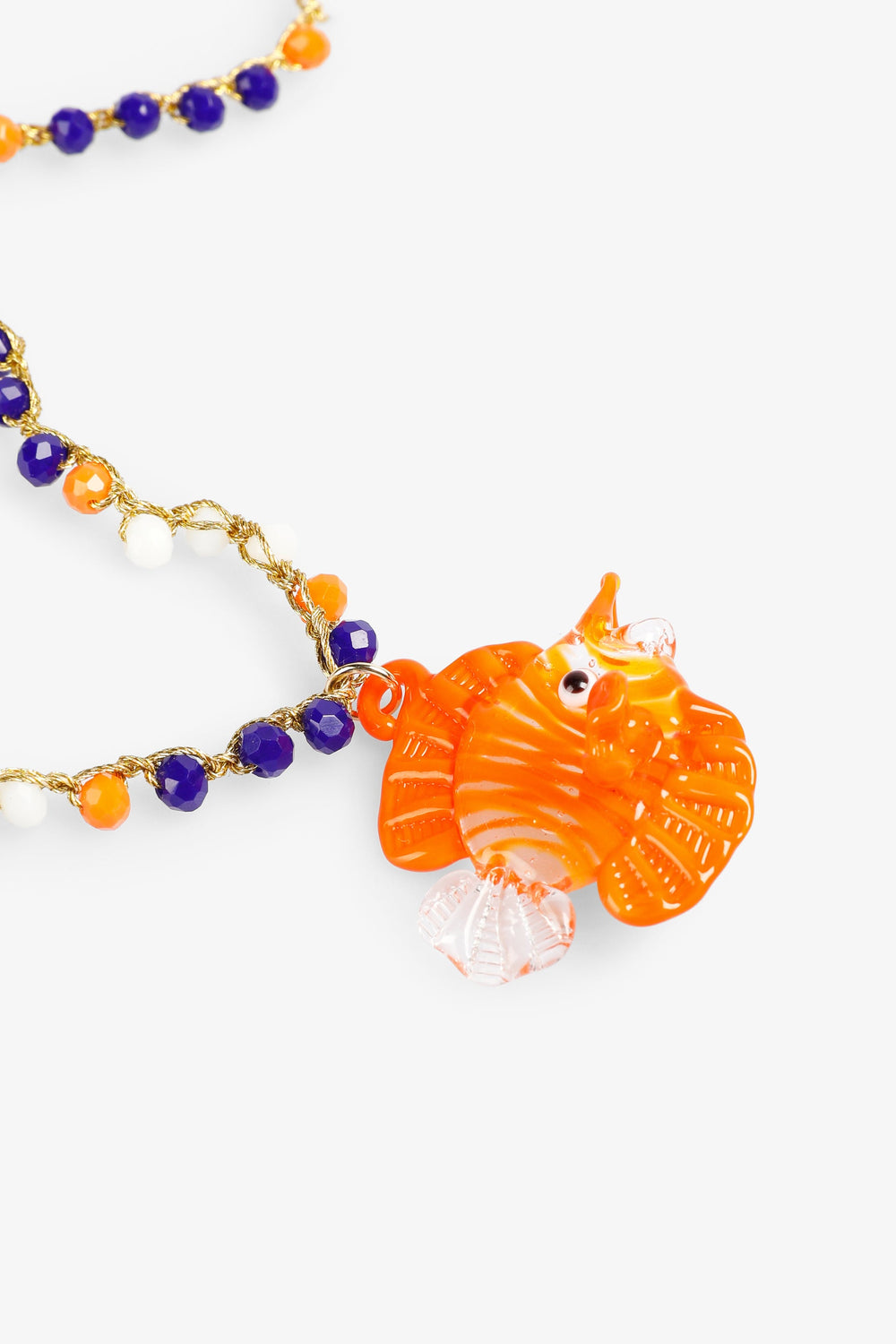 Three-tone glass bead necklace with fish detail.