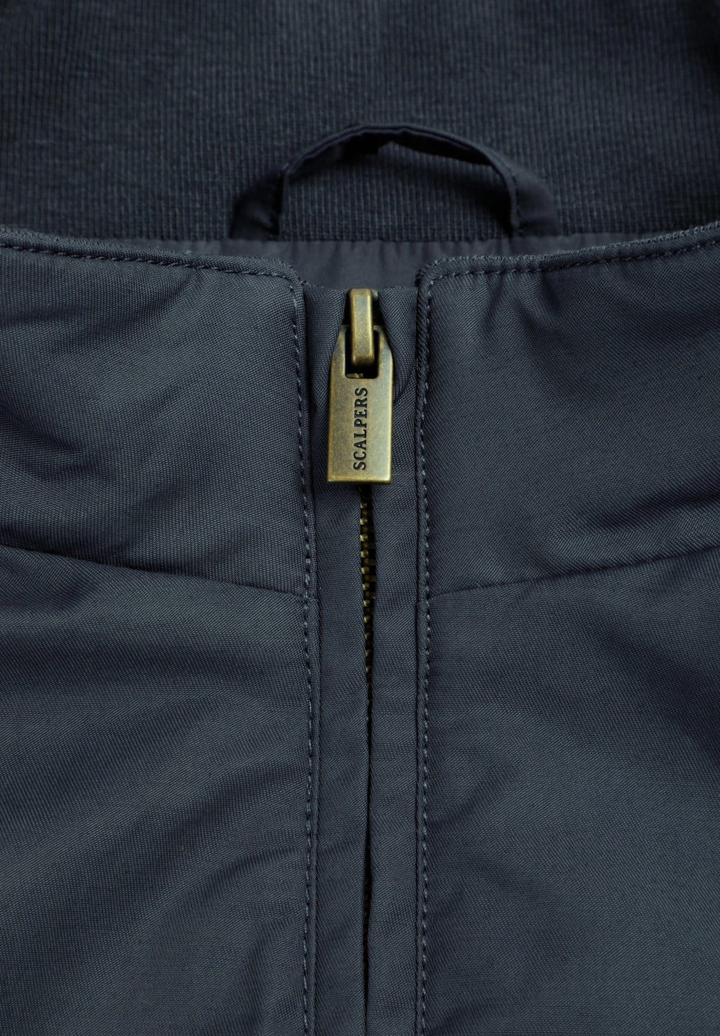 Bomber jacket made of a cotton blend. Double slider zip front fastening. Front slash pockets with flap and button fastening. Inner pocket. Ribbed trim. Logo on left sleeve in tonal colour. Label detail on the left side.