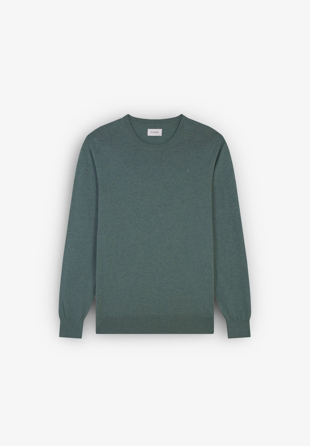 Sweater made of 100% high quality Supima cotton. Round neck. Matching embroidered skull on the chest. Ribbed trim.