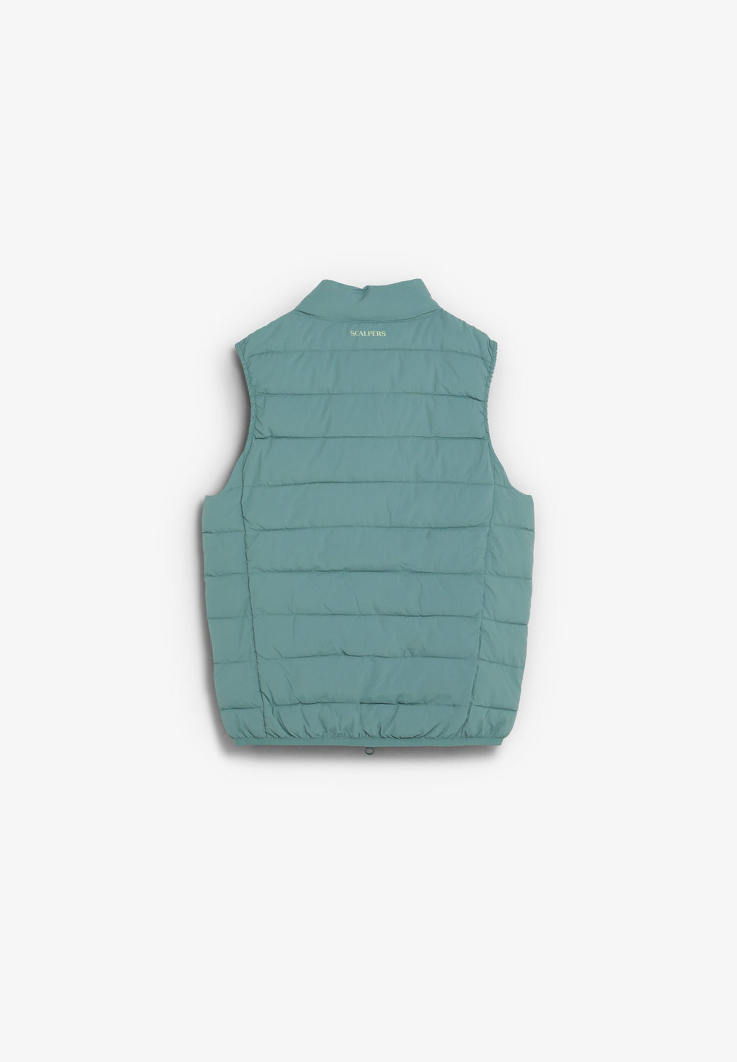 Lightweight quilted gilet with high collar and front zip fastening. A functional basic with side pockets and logo detail on the chest.