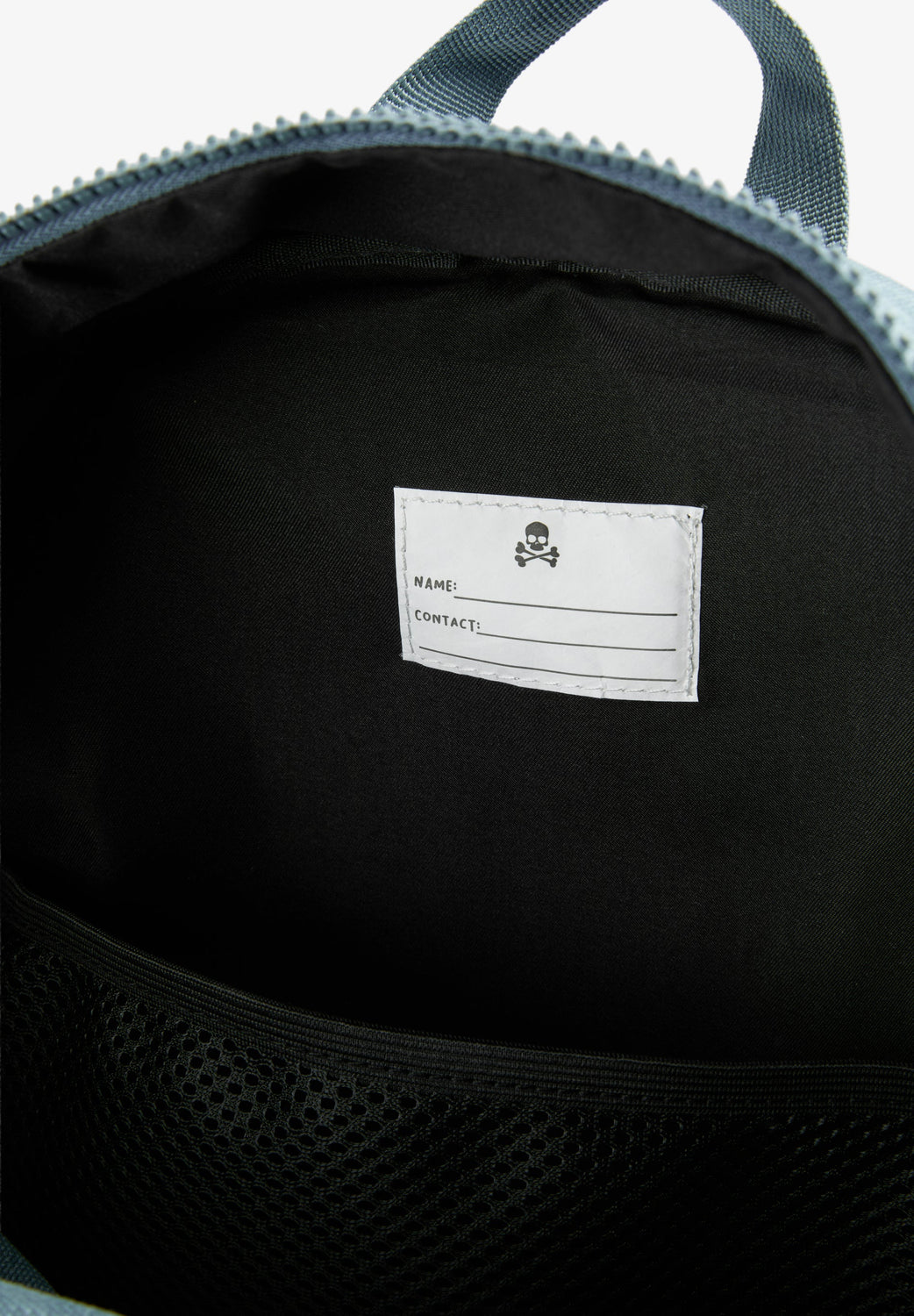 Backpack made of a canvas fabric. Top handle. Additional pocket at the front. Embroidered patch on the front. Inner compartment. Includes name tag inside.