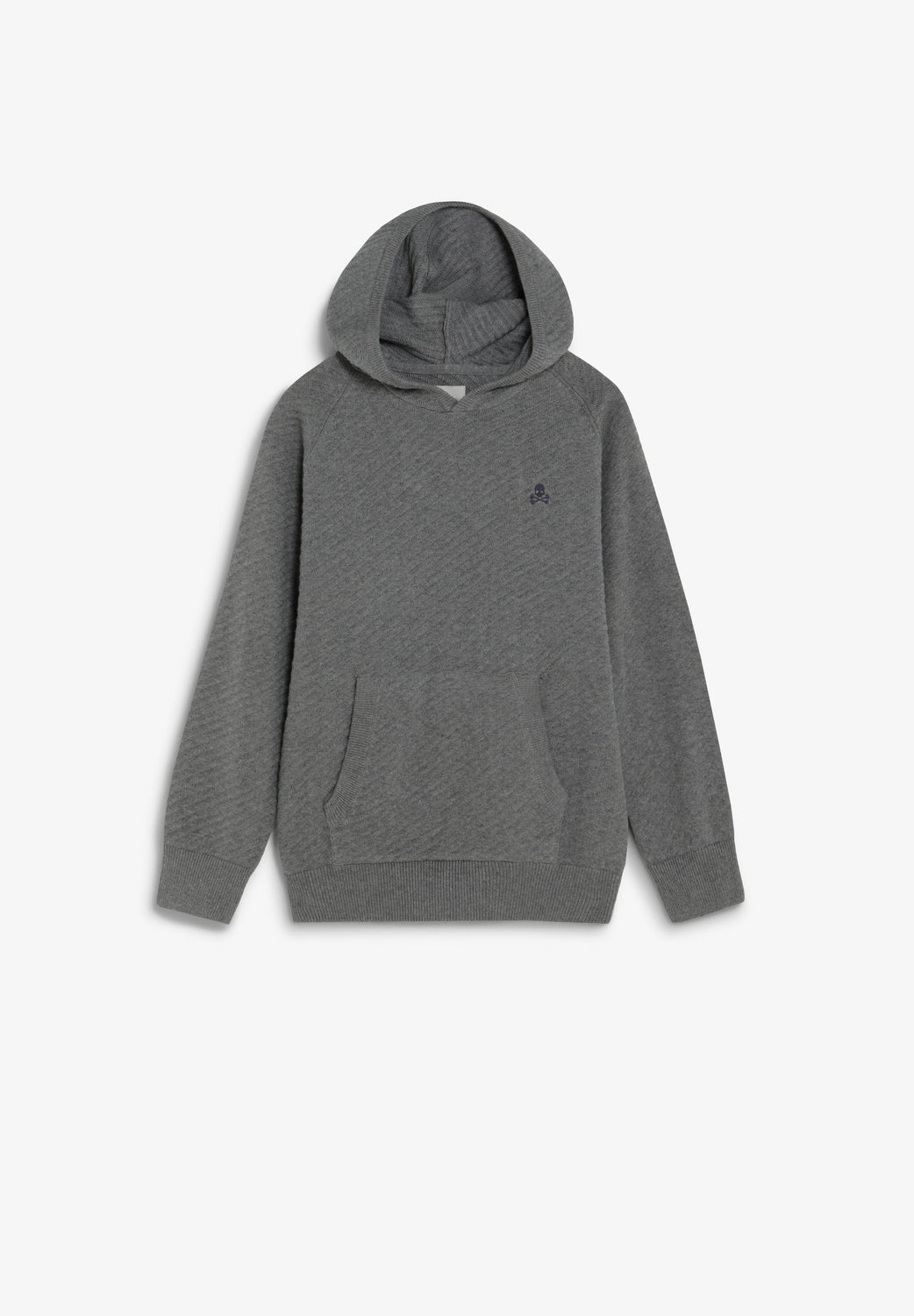 Basic sweatshirt made of 100% BCI cotton. Regular fit, collar with hood and long raglan sleeves. Front pocket. Embroidered logo on the chest.