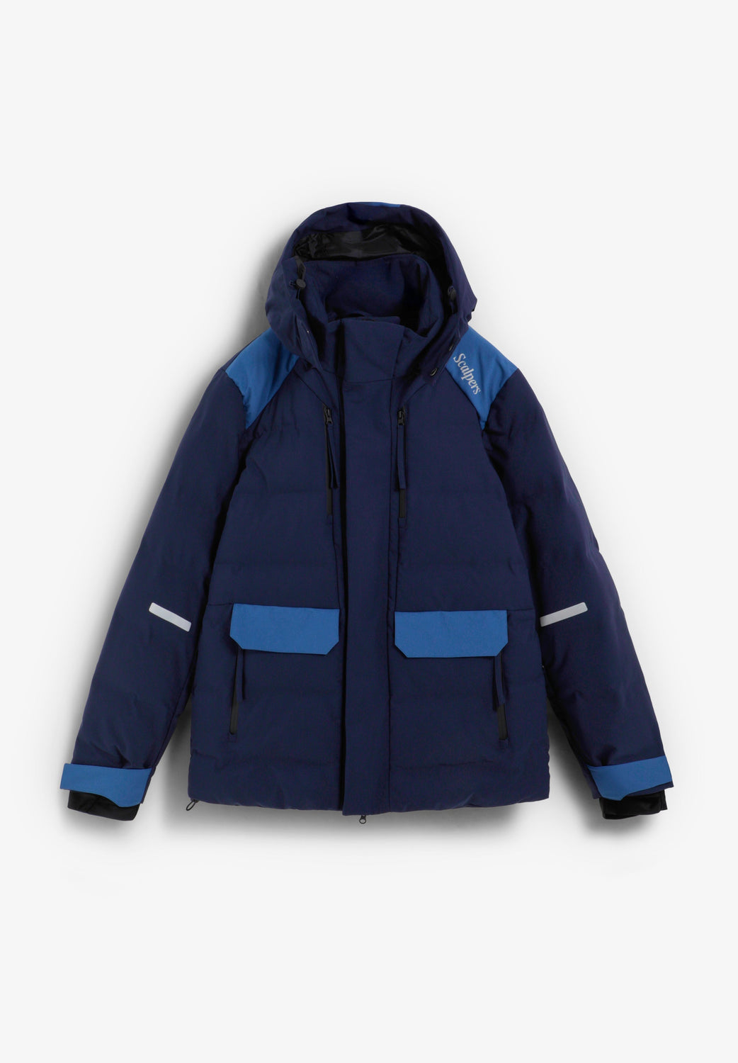 Quilted jacket made of technical fabric. It features a concealed front zip fastening with flap. High collar with detachable hood and adjusters. Front flap pockets with snap closure and zipped top pockets. Adjustable cuffs and contrast detailing with reflective details. Functional design with technical finishes. Logo detail on back and collar.