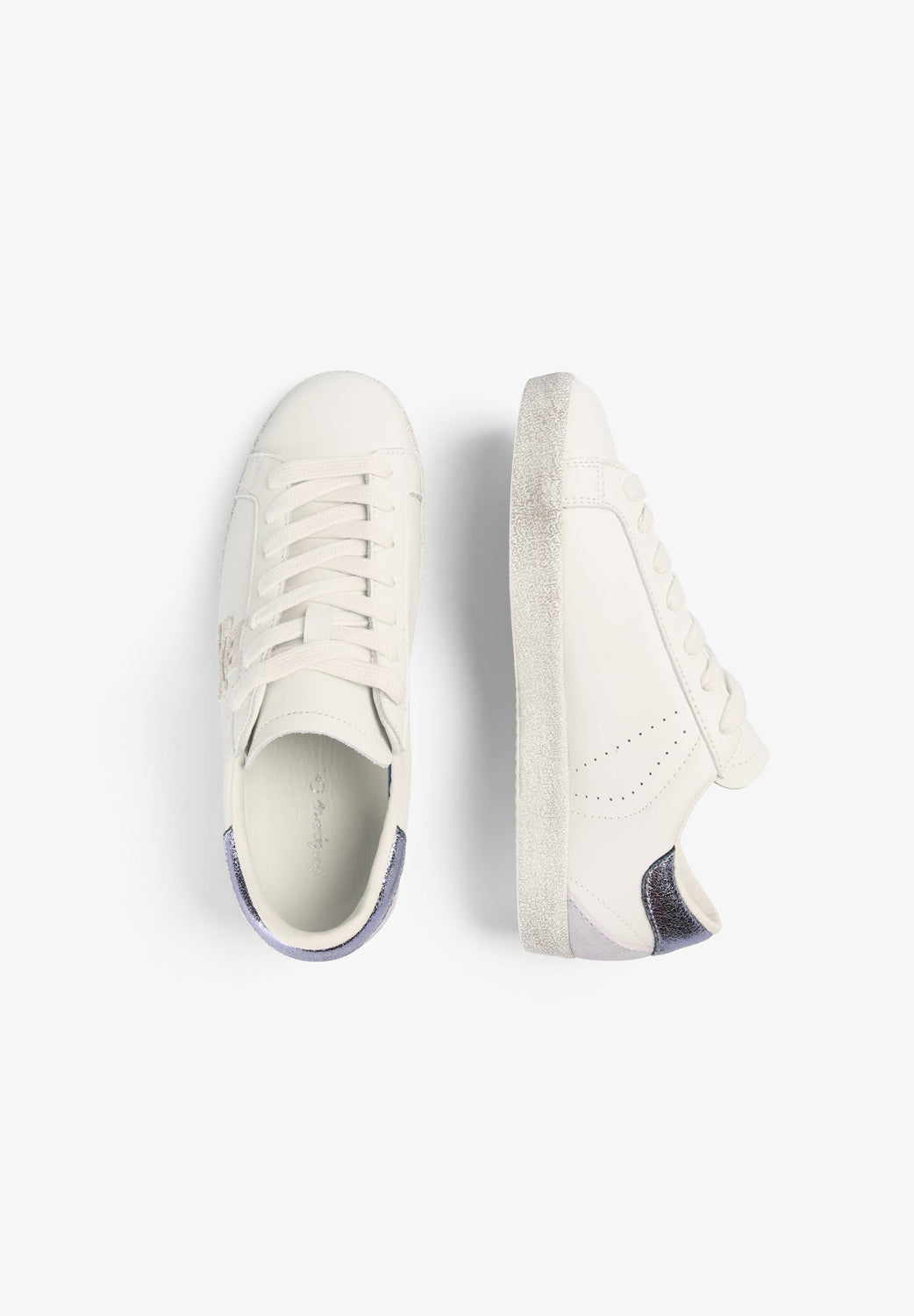 Sneakers made of 100% leather. Metallic side skull. Contrast metallic heel. Matching lace-up fastening. Worn effect sole.