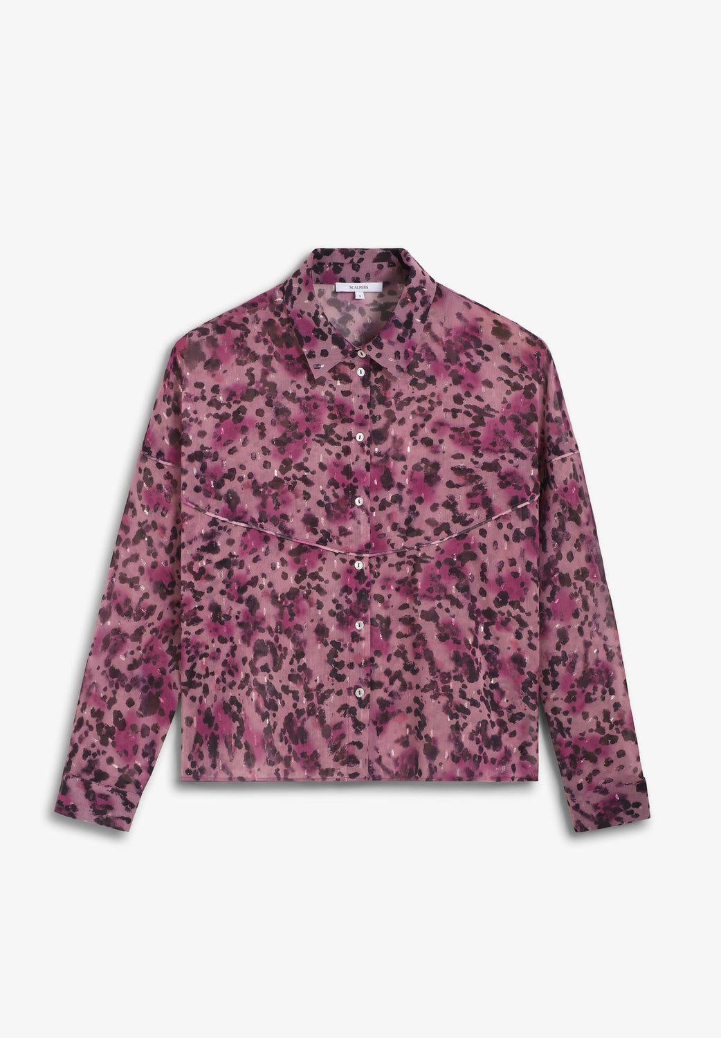 Blouse made of fluid animal print fabric. Regular fit, classic collar and button fastening. Long sleeves with buttoned cuffs.
