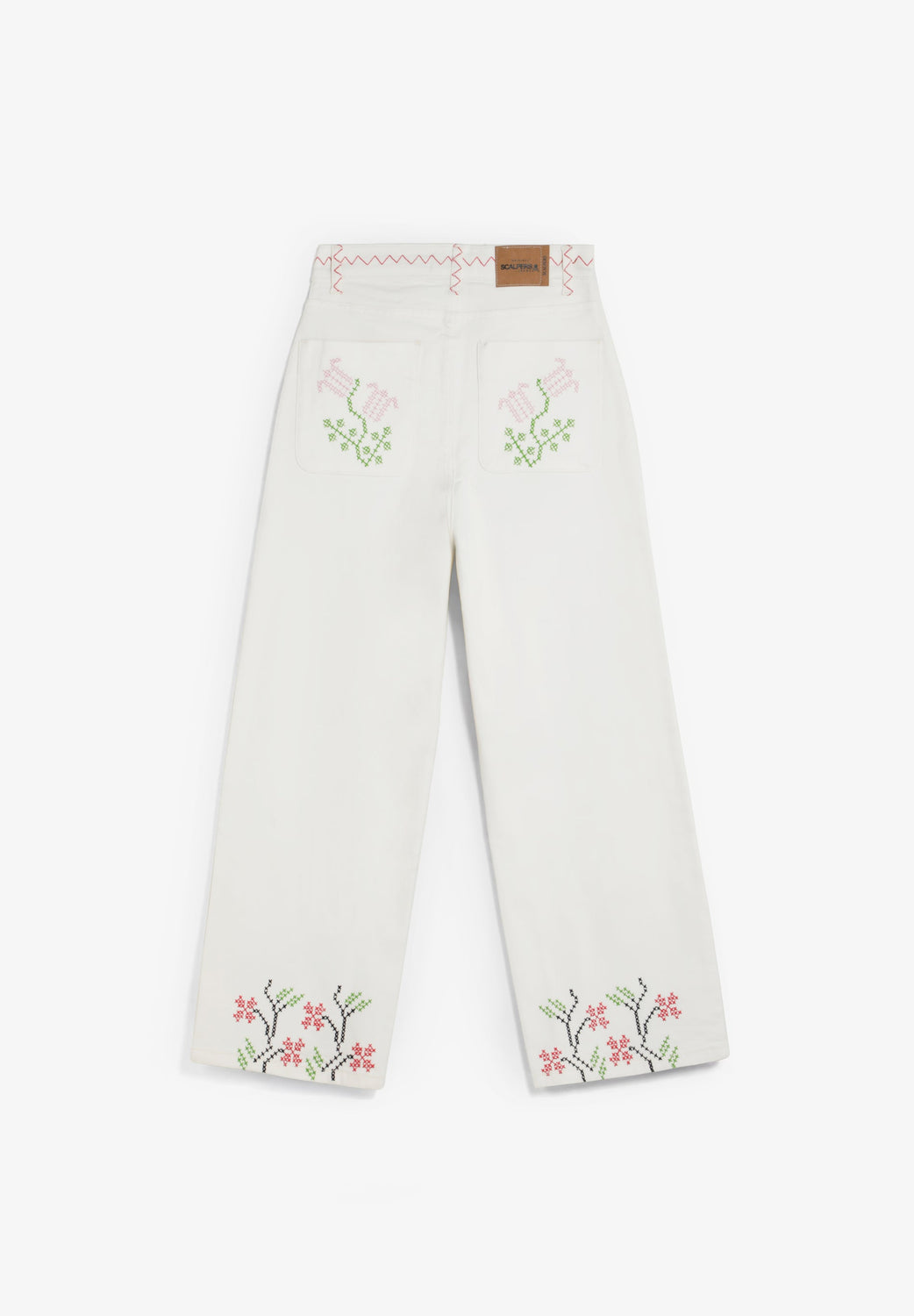 WIDE LEG JEANS WITH FLORAL EMBROIDERY