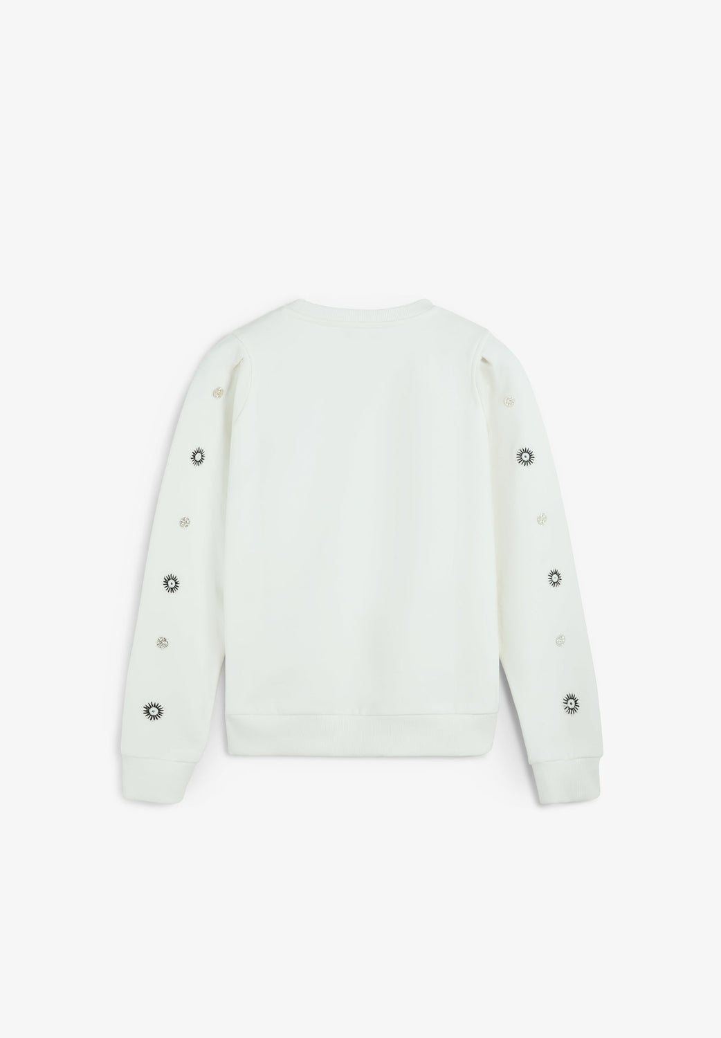 Sweatshirt made of 100% BCI cotton. Decorative embroidery and appliqué details on the sleeves. Round neck, long sleeves and ribbed trim on collar, cuffs and waist.